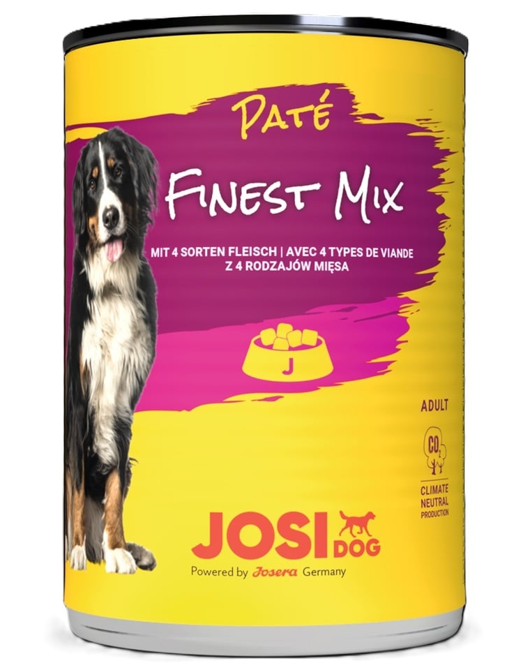 JosiDog Paté Finest Mix este o hrană umedă completă pentru câini adulți, cu o consistență fină de pate și o combinație delicioasă de cinci tipuri de carne. Rețeta oferă un gust intens și variat, ideal pentru câinii care apreciază mesele aromate, nutritive și bogate în proteine de calitate.