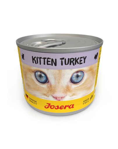 Chiar și cel mai mic pisoi va răspunde cu un miau sonor și înfometat atunci când i se oferă hrana umedă Josera Kitten Turkey! Nu suntem surprinși, deoarece hrana suculentă conține 70% curcan și pui, precum și o supă delicioasă de pasăre. Rețeta fără cereale oferă acizi grași esențiali omega-3 datorită uleiului de somon și poate chiar să contracareze formarea ghemotoacelor de blană cu ajutorul fibrelor vegetale dietetice speciale.