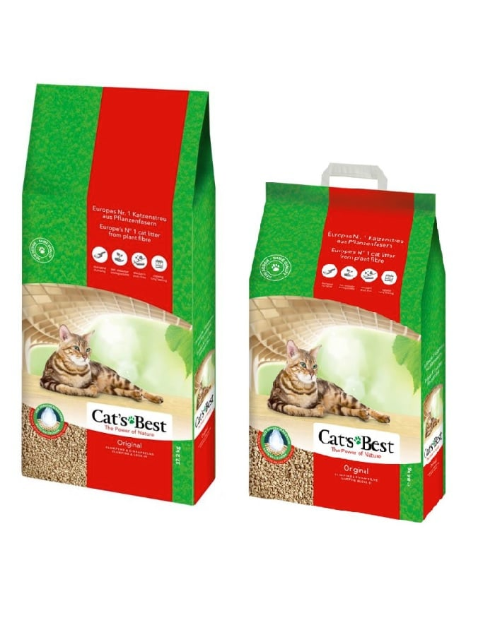 Cats Best Eco Plus este singurul așternut care este biodegradabil, îl puteți arunca pur și simplu în coș cu deșeuri biologice sau îl puteți îndepărta în toaletă (în cantități mici). Toate produsele acestui producător se bazează pe conceptul de produs natural și ecologic durabil. Numai fibrele vegetale din anumite tipuri de lemn din culturi forestiere locale și durabile sunt folosite pentru a produce așternutul.