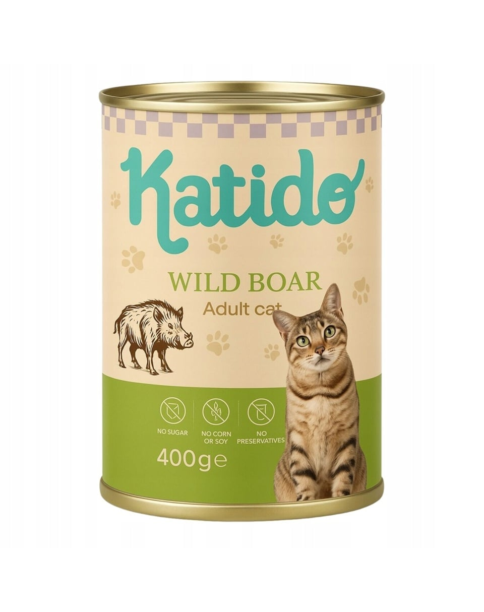 KATIDO Adult Cat Wild Boar este o hrană umedă completă pentru pisici adulte, creată pentru proprietarii care caută o aromă distinctivă, ingrediente simple și valoare nutritivă ridicată. Rețeta, bazată pe 70% carne de mistreț, oferă proteine ușor digerabile, susținând energia, mușchii și vitalitatea zilnică a pisicii dumneavoastră.