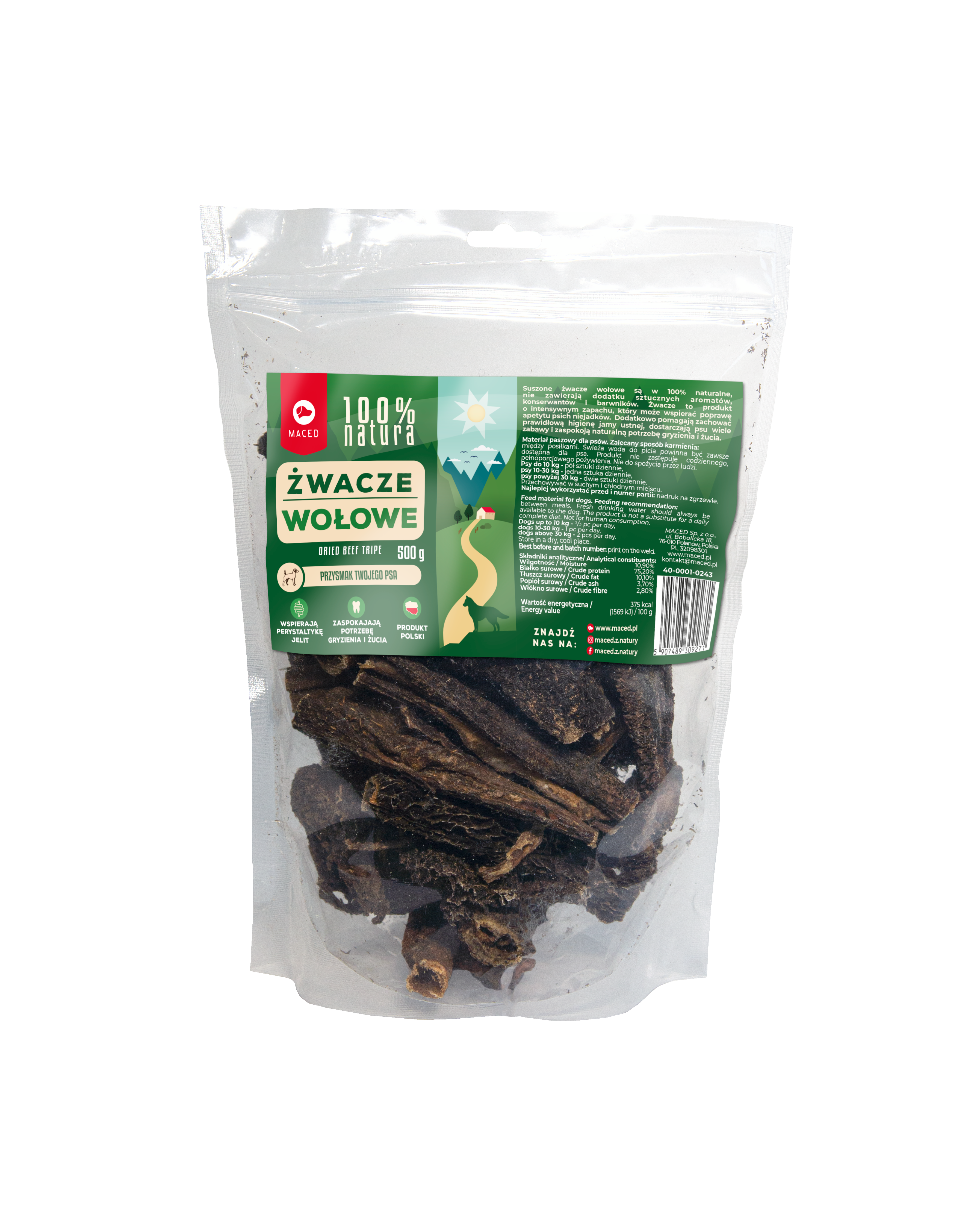 Burta de vită uscata este 100% natural și nu conține arome, conservanți sau coloranți artificiali. Mestecatul recompensei reduce tartrul și îi oferă câinelui dumneavoastră un masaj intensiv pentru gingii, susținând în același timp activitatea mușchilor maxilarului. Este un supliment alimentar plin de culturi bacteriene extrem de valoroase care completează flora bacteriană naturală din intestinele animalelor. De asemenea, potrivit pentru căței.