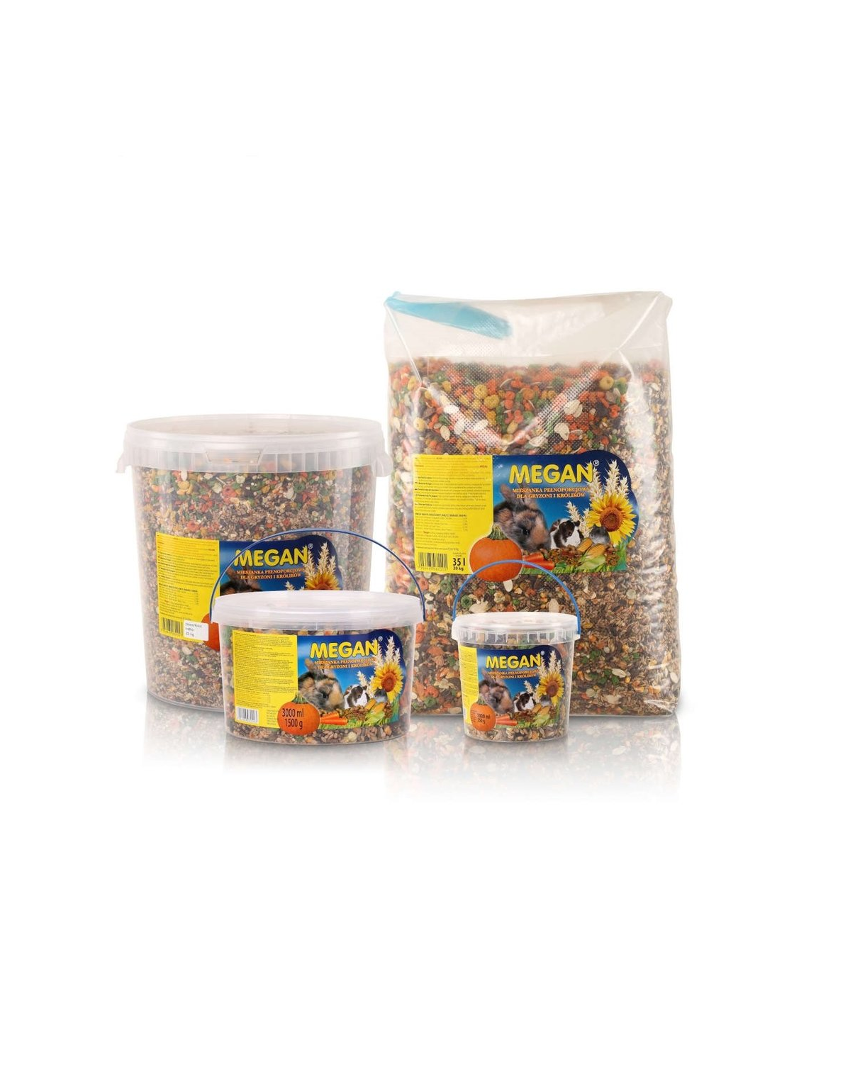 Hrana de baza contine un amestec special selectat de cereale, leguminoase, legume și fructe. Este o masă completă pentru rozătoare și iepuri.