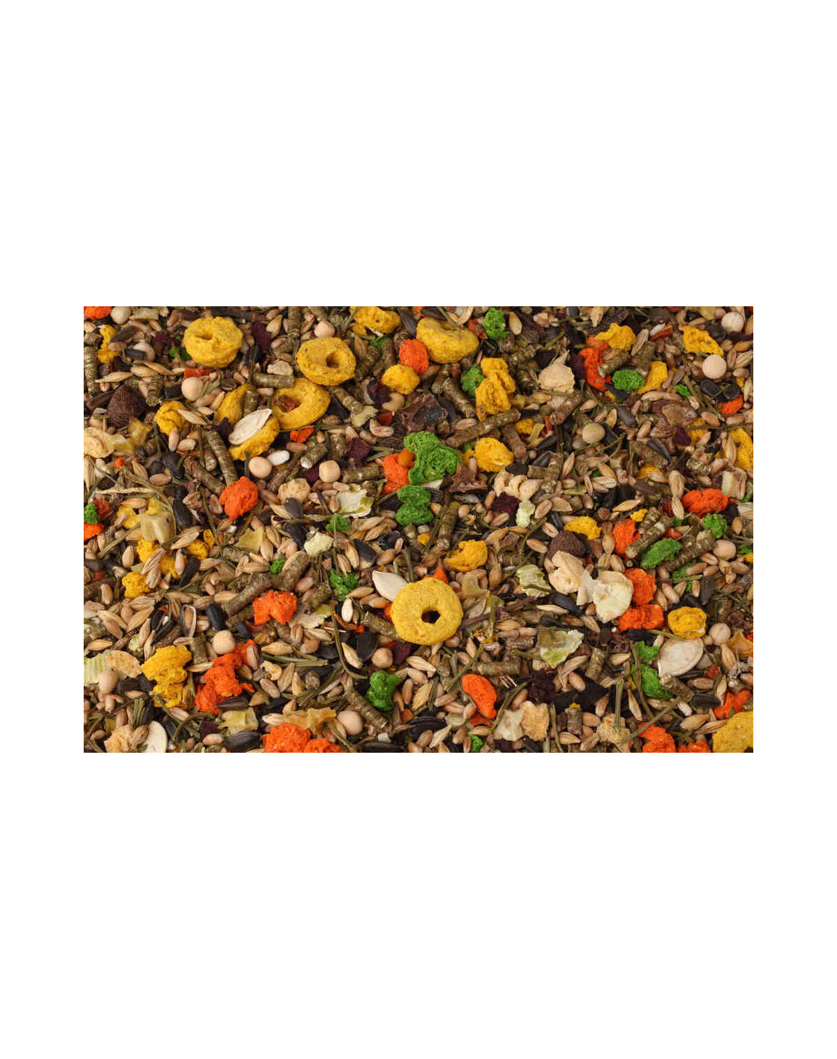 granule, orz, grâu, semințe de floarea soarelui, mazăre, roșcove, chipsuri de porumb, pătrunjel, sfeclă roșie, morcovi uscați, semințe de dovleac, cartofi uscați.