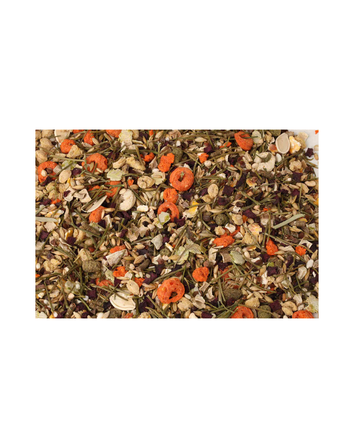 Amestecul conține ierburi, cereale și legume (unele special pregătite, care apar în mediul natural al acestor animale).