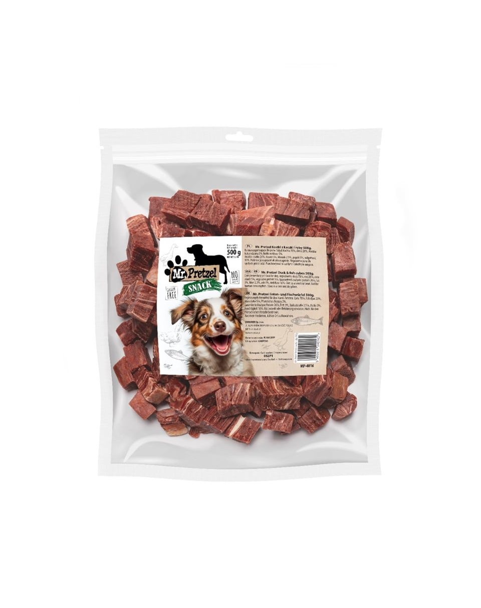 Cuburile naturale din carne de rață și pește marca Mr. Pretzel sunt o gustare premium, creată pentru a oferi câinelui tău un echilibru perfect între savoare, sănătate și energie.