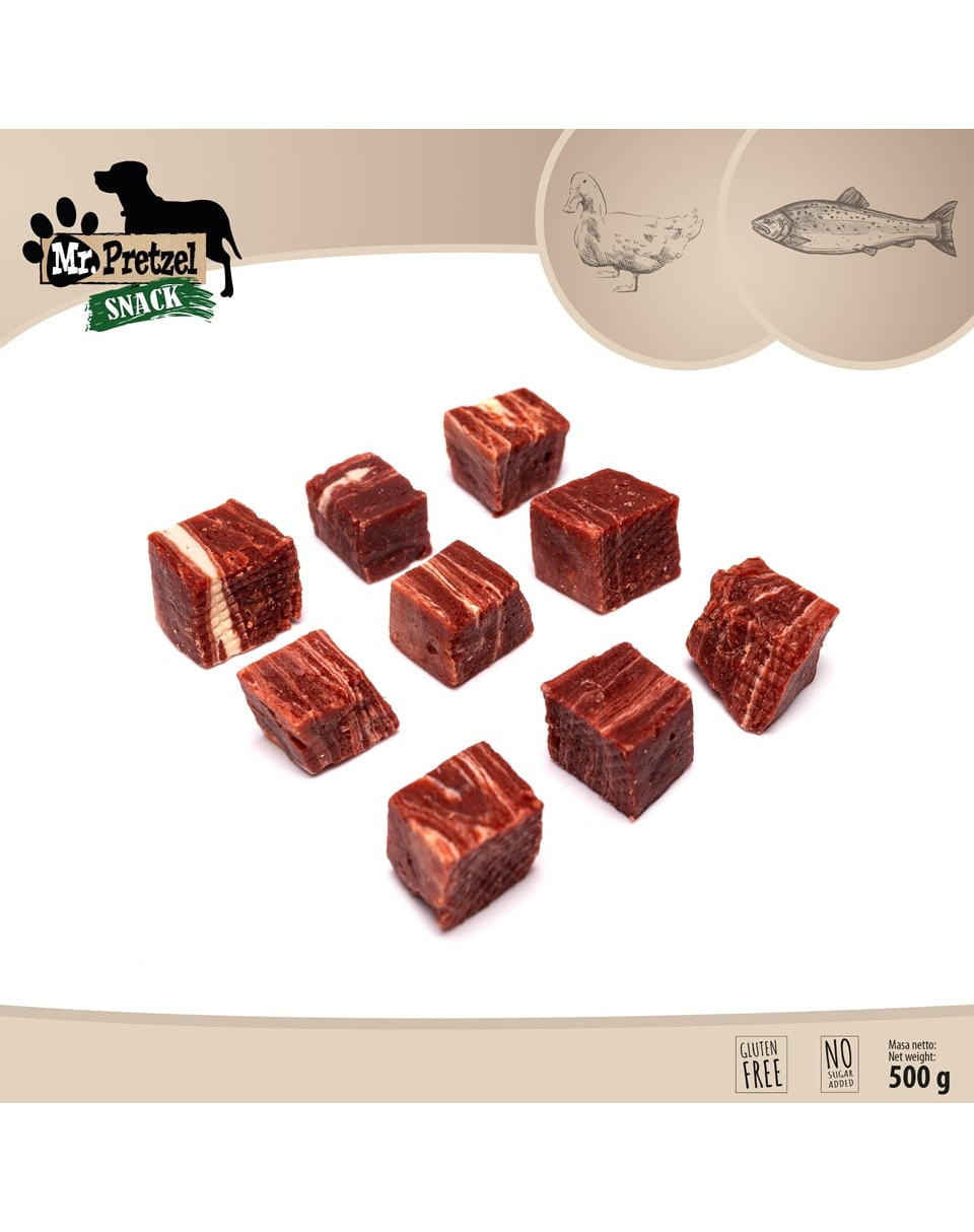 Mr. Pretzel Cuburi din carne de rață și pește – gustare naturală pentru câini de toate rasele și vârstele