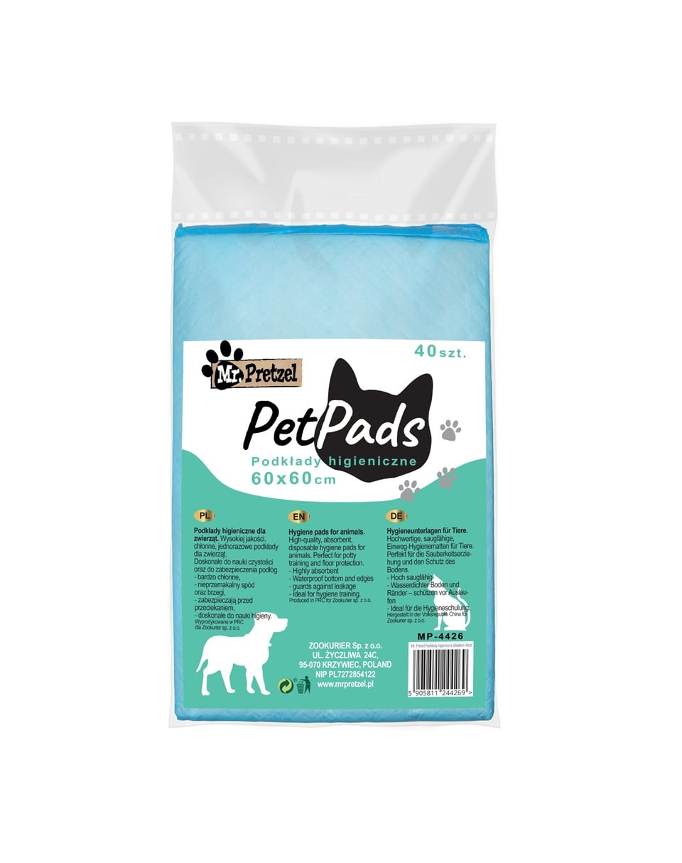 Mr. Pretzel pături absorbante 60×60 cm (40 bucăți) – soluția practică și sigură pentru menținerea curățeniei în casă și confortul câinelui tău.