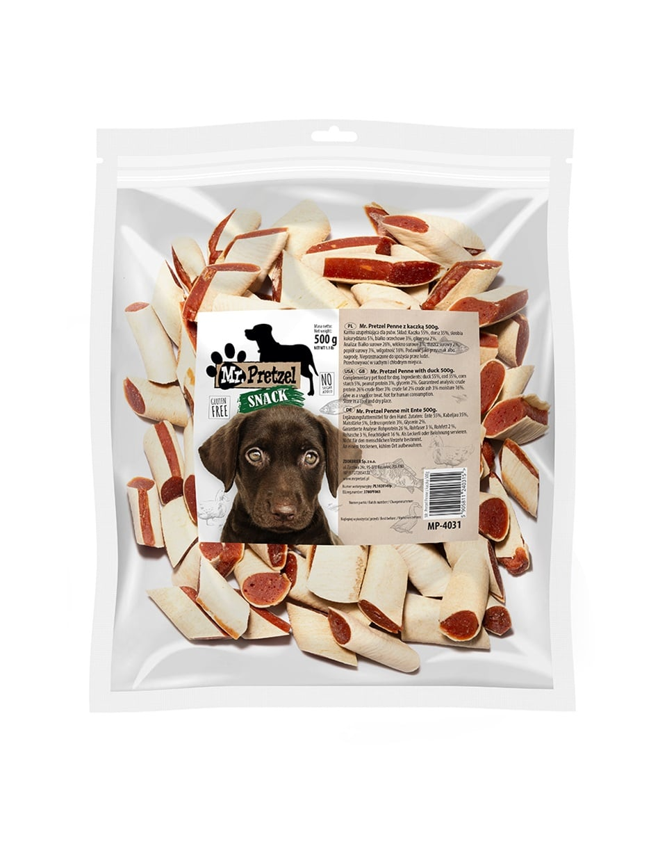 PREMIUM – Mr. Pretzel Penne cu rață sunt recompense din carne de cea mai înaltă calitate, extrem de gustoase, destinate prietenului tău patruped.