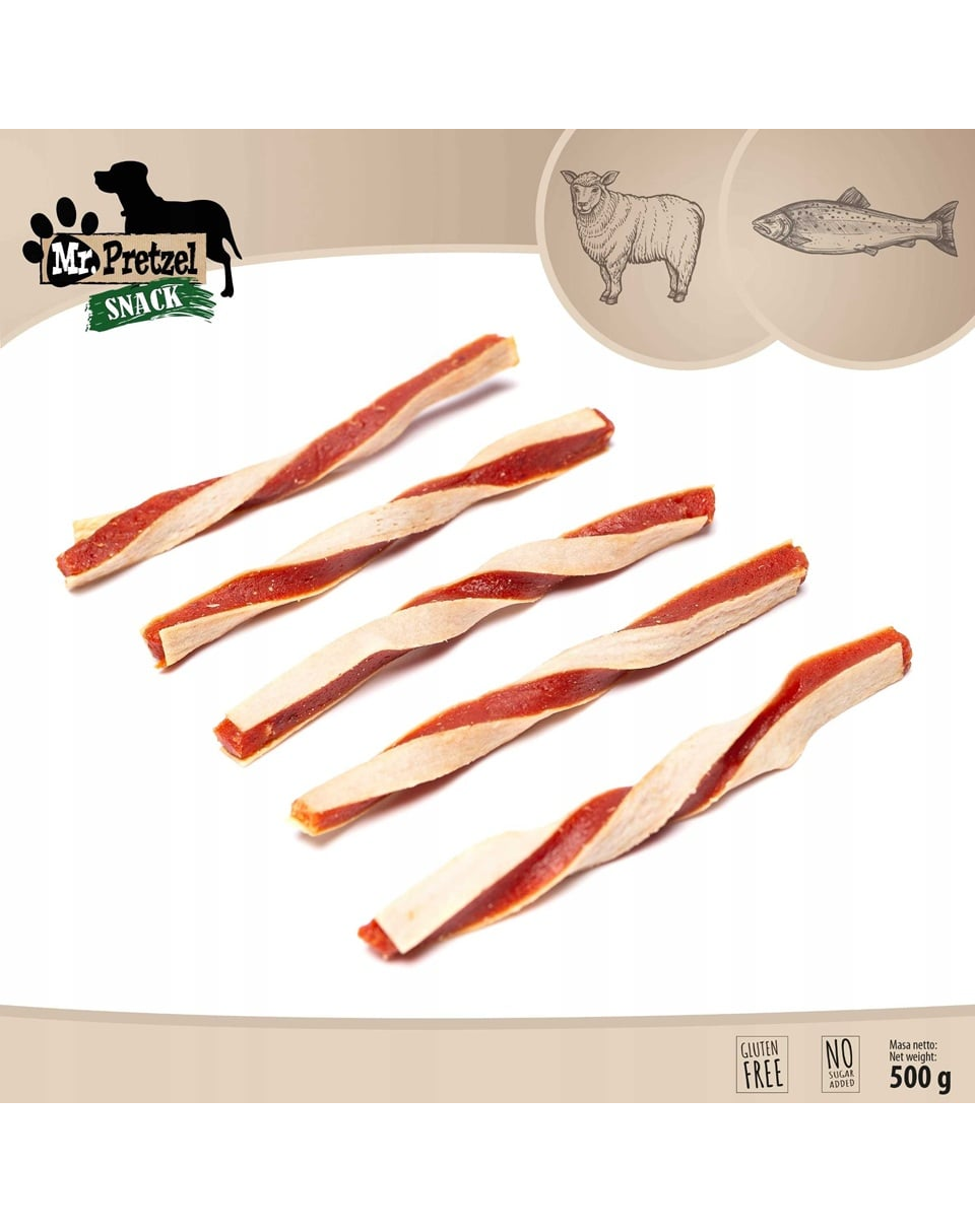 Gustările Mr. Pretzel cu miel și pește pot fi folosite ca recompensă în timpul plimbărilor, sesiunilor de antrenament sau pur și simplu ca răsfăț zilnic.