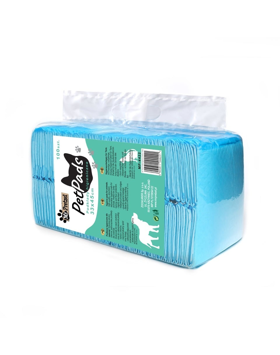 Mr. Pretzel pături absorbante 33×45 cm (100 bucăți) – soluția ideală pentru menținerea curățeniei și igienei zilnice în locurile frecventate de câini.