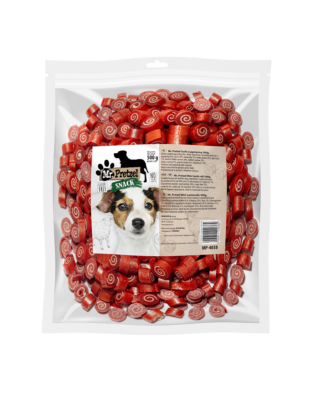 PREMIUM – Mr. Pretzel Sushi cu miel sunt recompense din carne de cea mai bună calitate, extrem de gustoase, create special pentru prietenul tău patruped.