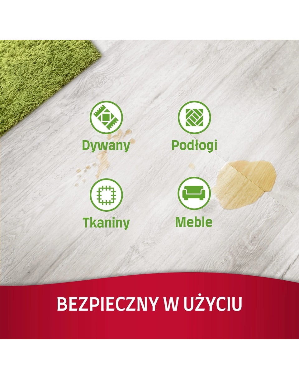Produsul pentru îndepărtarea petelor și a mirosurilor: curățați pata cât mai bine posibil și apoi îmbibați bine zona murdară cu produsul. Înmuierea este importantă, deoarece permite produsului să pătrundă mai adânc. Se lasă timp de 15 minute și apoi se usucă pata cu o cârpă curată.