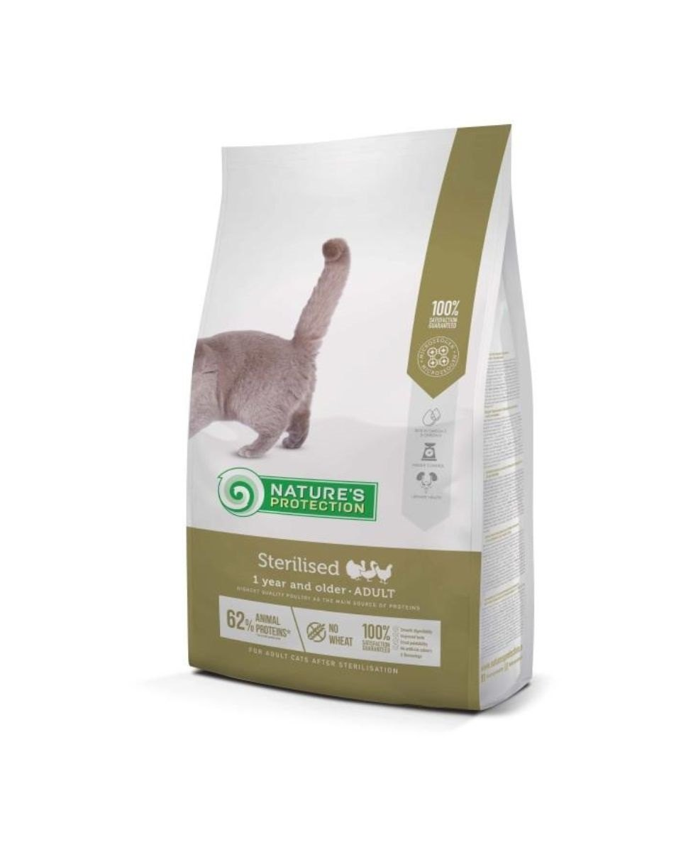 Nature's Protection Sterilised pentru pisici de 1 an și mai în vârstă cu pasăre este o hrană uscată completă și echilibrată pentru pisici adulte după sterilizare.