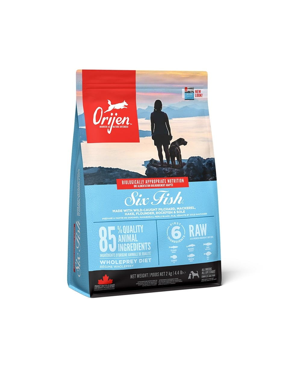 ORIJEN SIX FISH are un conținut inegalabil de pește prins în apele cristaline din Pacificul de Nord. Sunt livrate întregi, proaspete și pline de valoare nutritivă. ORIJEN este pregătit cu mândrie în bucătăriile NorthStar® pentru a vă menține câinele sănătos, puternic și fericit.