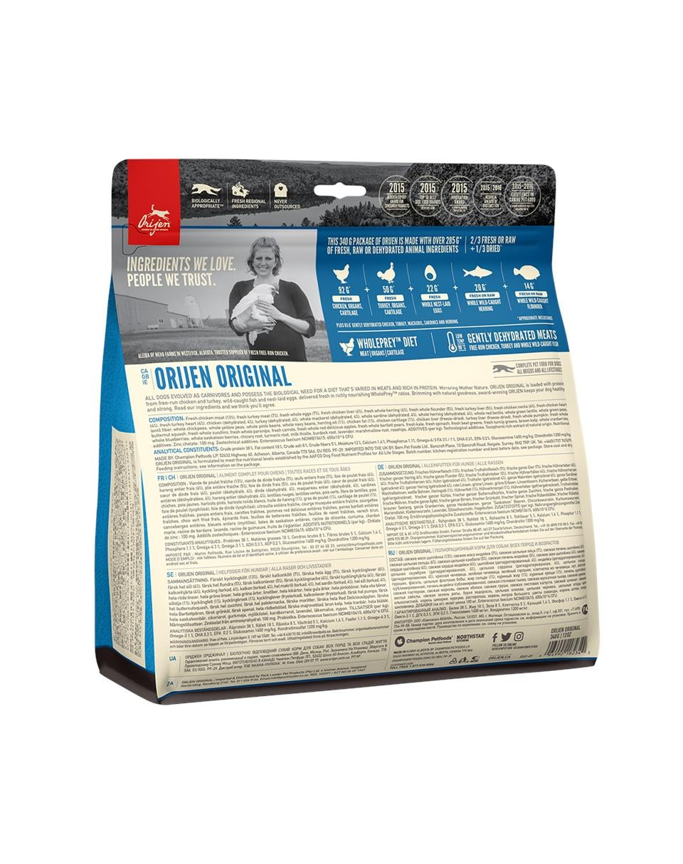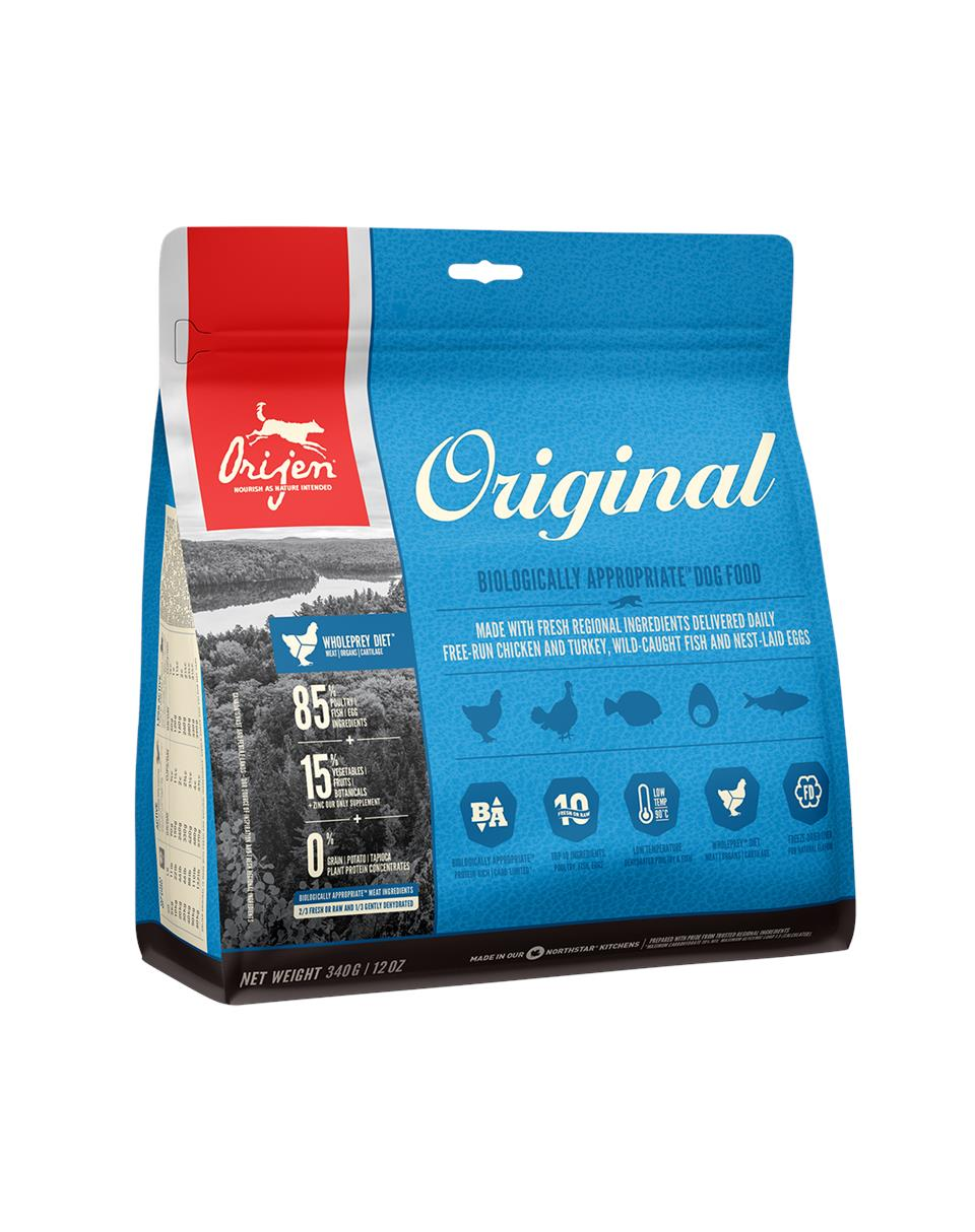 Pui proaspăt (25%), curcan crud (8%), măruntaie proaspete de pui (ficat, inimă) (7%), hering crud întreg (6%), merluciu crud întreg (5%), ouă proaspete (5%), ficat crud de curcan (5%), pui deshidratat (4%), curcan deshidratat (4%), macrou deshidratat (4%), sardină deshidratată (4%), hering deshidratat (4%), linte roșie întreagă, năut întreg, mazăre întreagă, mazăre întreagă, grăsime de pui (3%), linte verde întreagă, fasole pinto întreagă, fasole navy întreagă, fibre de linte, ulei de pollock (1%), amidon de mazăre, alge marine deshidratate, dovleac întreg proaspăt, mușchi întreg proaspăt, dovlecel întreg proaspăt, dovlecel întreg proaspăt, morcov întreg proaspăt, măr întreg proaspăt, pară întreagă proaspătă, rădăcină de cicoare deshidratată, varză kale proaspătă, spanac proaspăt, sfeclă roșie proaspătă, frunze de napi proaspete, afine întregi, afine întregi, fructe de saskatoon întregi, turmeric, ciulin de lapte, rădăcină de brusture, lavandă, holly, măceșe.