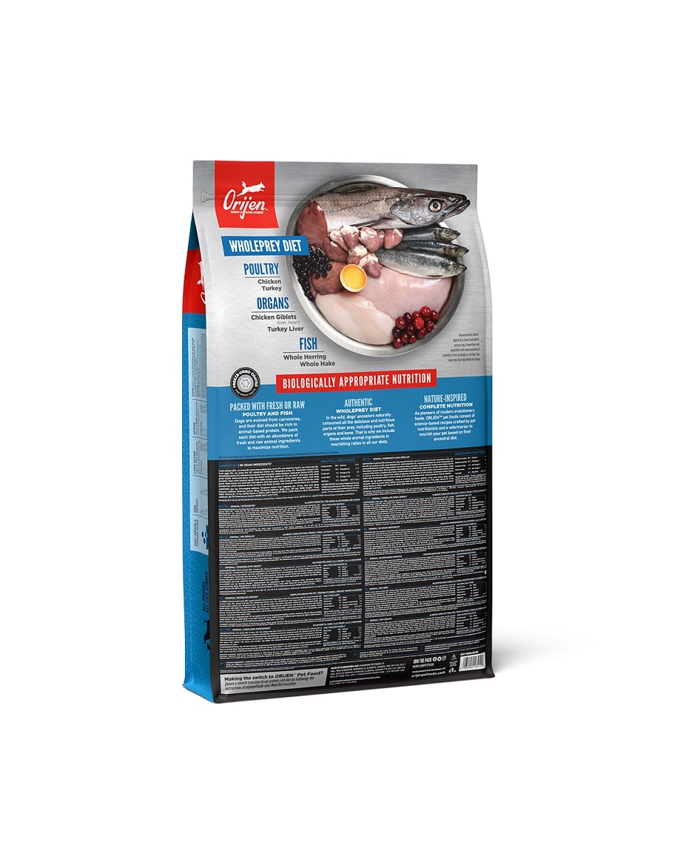 Hrana are la bază carne de pui și curcan, la care se adaugă pește din capturile naturale și ouă de hambar. Peștele - de exemplu, heringul sau plătica - este o sursă bogată de grăsimi și acizi grași nesaturați Omega-3 și -6, care întăresc inima și sistemul nervos al câinelui, menținând totodată aspectul sănătos al pielii și al blănii. În plus, hrana a fost îmbogățită cu zinc pentru o blană puternică și sănătoasă și cu condroitină și glucozamină pentru a întări oasele și articulațiile și pentru a minimiza riscul de rănire sau luxație.