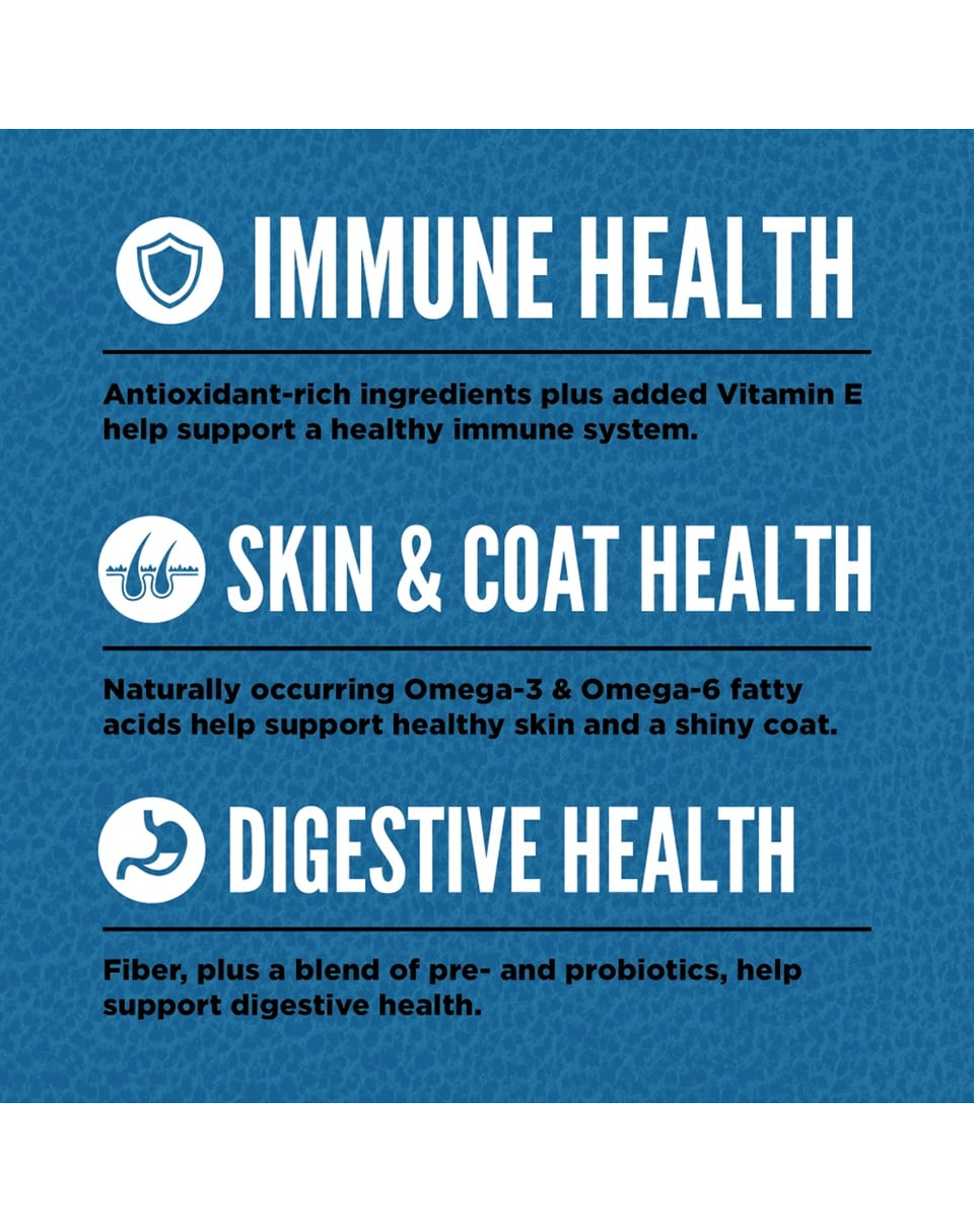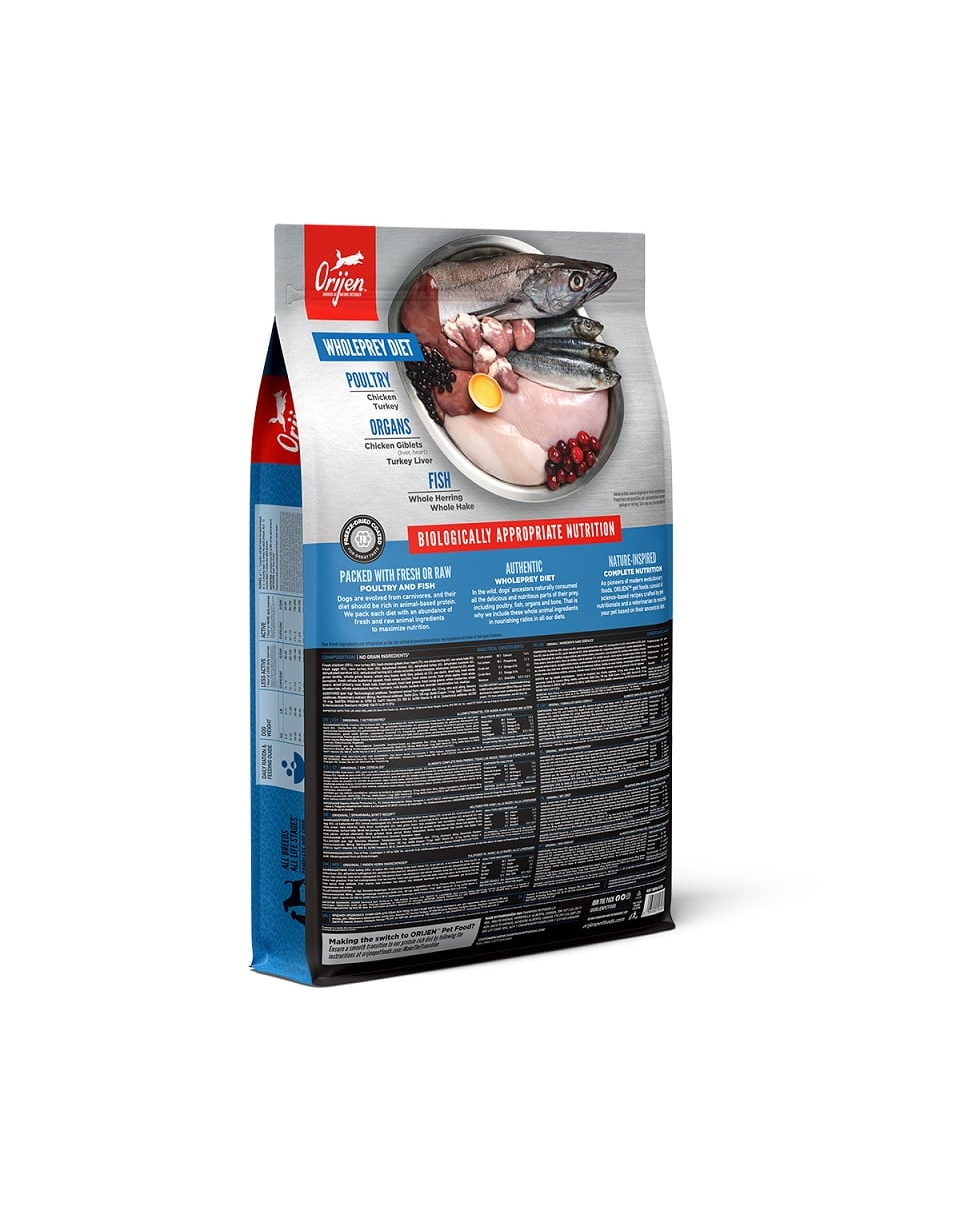 Pui proaspăt (25%), curcan crud (8%), măruntaie proaspete de pui (ficat, inimă) (7%), hering crud întreg (6%), merluciu crud întreg (5%), ouă proaspete (5%), ficat crud de curcan (5%), pui deshidratat (4%), curcan deshidratat (4%), macrou deshidratat (4%), sardine deshidratate (4%), hering deshidratat (4%), linte roșie întreagă, năut întreg, mazăre întreagă, mazăre întreagă, grăsime de pui (3%), linte verde întreagă, fasole pinto întreagă, fasole navy întreagă, fibre de linte, ulei de pollock (1%), amidon de mazăre, alge marine deshidratate, dovleac întreg proaspăt, mușchi întreg proaspăt, dovlecel întreg proaspăt, dovlecel întreg proaspăt, morcov întreg proaspăt, măr întreg proaspăt, pară întreagă proaspătă, rădăcină de cicoare deshidratată, varză kale proaspătă, spanac proaspăt, sfeclă roșie proaspătă, frunze de napi proaspete, afine întregi, afine întregi, fructe de saskatoon întregi, turmeric, ciulin de lapte, rădăcină de brusture, lavandă, holly, măceșe.