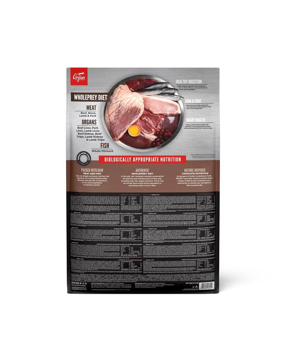 Hrană uscată, completă, fără cereale, pentru pisici adulte. Este plină de proteine nutritive din carne de vită, bizon, miel, carne de porc, sardine și, de asemenea, organe comestibile, și ouă de fermă. Ingredientele sunt livrate proaspete zilnic și adăugate în hrană în proporții nutritive. Formula conține un conținut limitat de grăsimi și carbohidrați și un amestec unic de fibre din dovleac și măr, asigurând o condiție maximă pentru toate pisicile adulte. Formularea hranei s-a bazat pe dieta ancestrală a pisicilor și pe ani de cercetare. Un conținut ridicat de proteine animale de 85% asigură aminoacizii și alți nutrienți cu cea mai bună și cea mai rapidă absorbție. 2/3 din ingrediente sunt potrivite pentru consumul uman și sunt doar ușor prelucrate în mâncare, în timp ce restul de 1/3 este deshidratat la 90*.