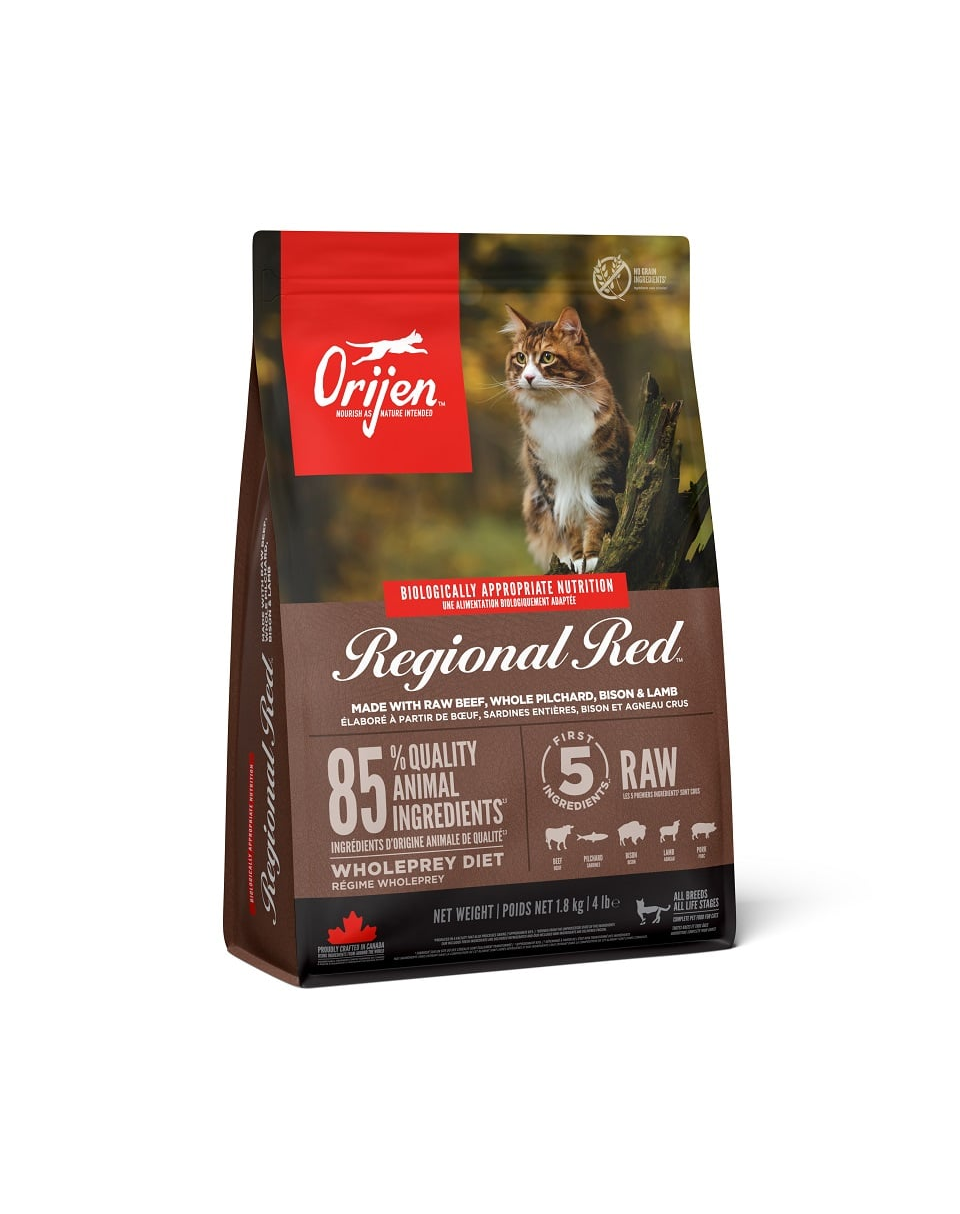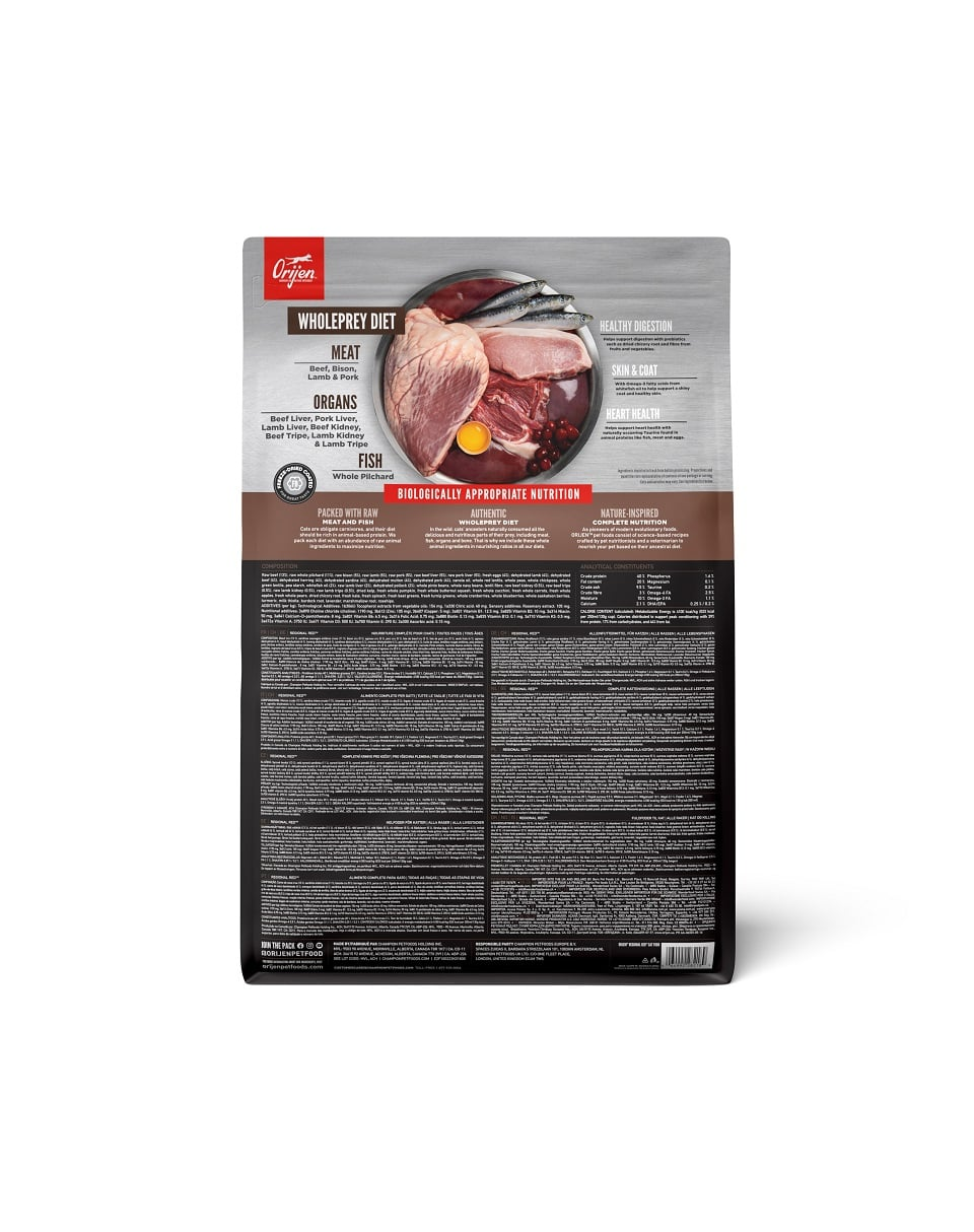 Hrană uscată, completă, fără cereale, pentru pisici adulte. Este plină de proteine nutritive din carne de vită, bizon, miel, carne de porc, sardine și, de asemenea, organe comestibile, și ouă de fermă. Ingredientele sunt livrate proaspete zilnic și adăugate în hrană în proporții nutritive. Formula conține un conținut limitat de grăsimi și carbohidrați și un amestec unic de fibre din dovleac și măr, asigurând o condiție maximă pentru toate pisicile adulte. Formularea hranei s-a bazat pe dieta ancestrală a pisicilor și pe ani de cercetare. Un conținut ridicat de proteine animale de 85% asigură aminoacizii și alți nutrienți cu cea mai bună și cea mai rapidă absorbție. 2/3 din ingrediente sunt potrivite pentru consumul uman și sunt doar ușor prelucrate în mâncare, în timp ce restul de 1/3 este deshidratat la 90*.