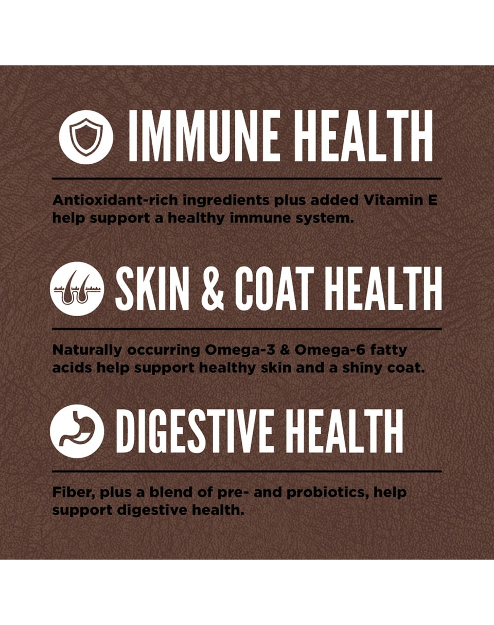 Ingrediente unice, precum carnea de vită Angus, folosită în producție asigură o proporție ridicată de proteine animale, care sunt absorbite cel mai rapid și cel mai bine utilizate de carnivore.