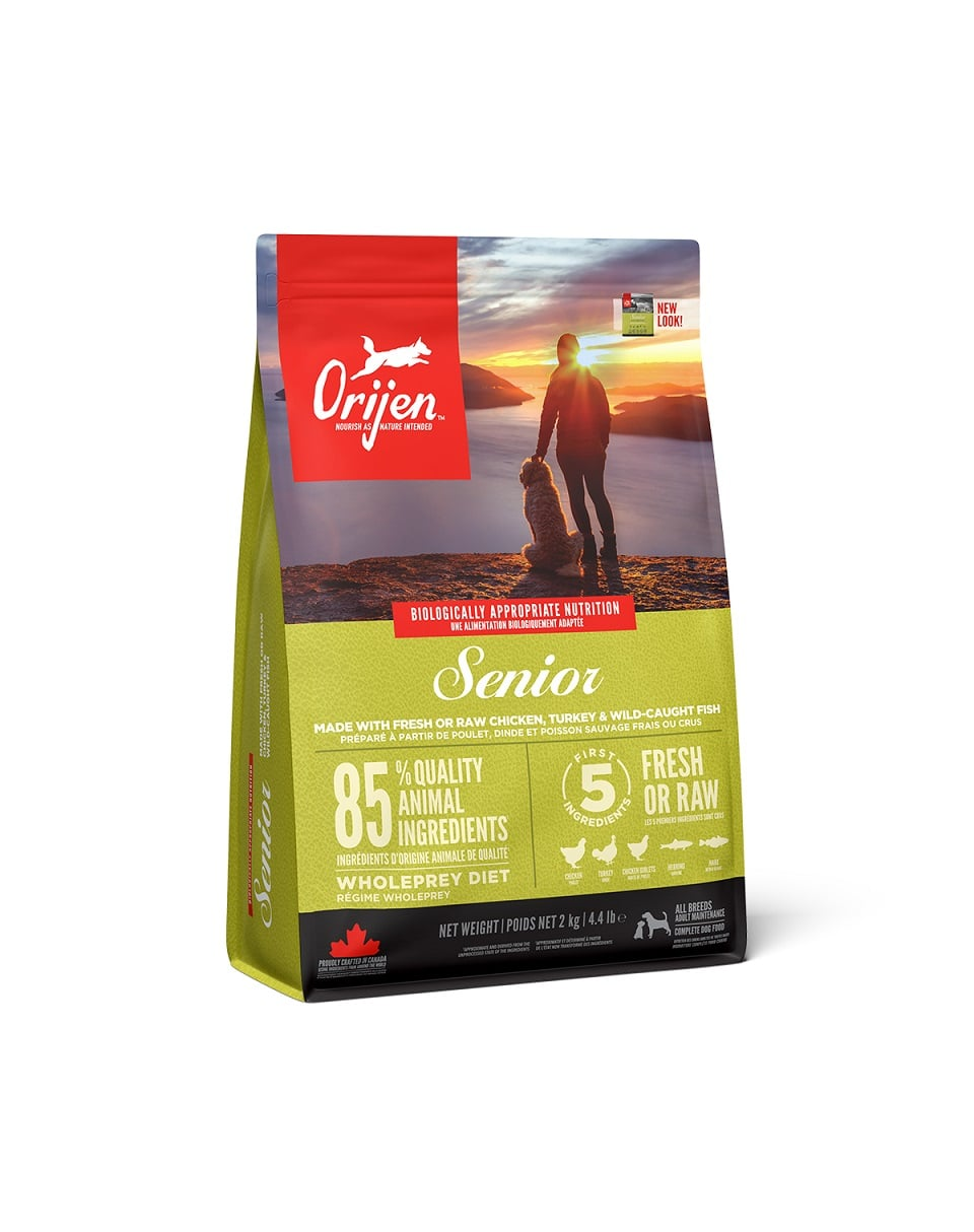 Orijen Senior este un aliment uscat pentru câinii mai în vârstă.