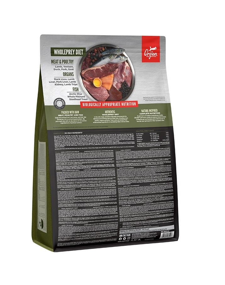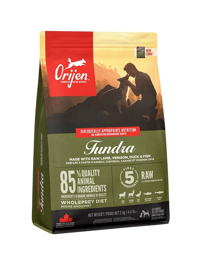 Dieta ORIJEN® Tundra oferă câinelui dumneavoastră proteinele și nutrienții hrănitori de care are nevoie, din ingrediente proaspete sau crude precum rață, pește și vânat. Plină de ingrediente de origine animală WholePrey, precum organe și oase, hrana ORIJEN este preparată cu părțile cele mai bogate în nutrienți și mai suculente ale prăzii pentru a oferi nutriția de care câinii au nevoie. Cu 85%2 ingrediente animale de calitate și acoperită cu ficat liofilizat, această hrană este fără comparație.
