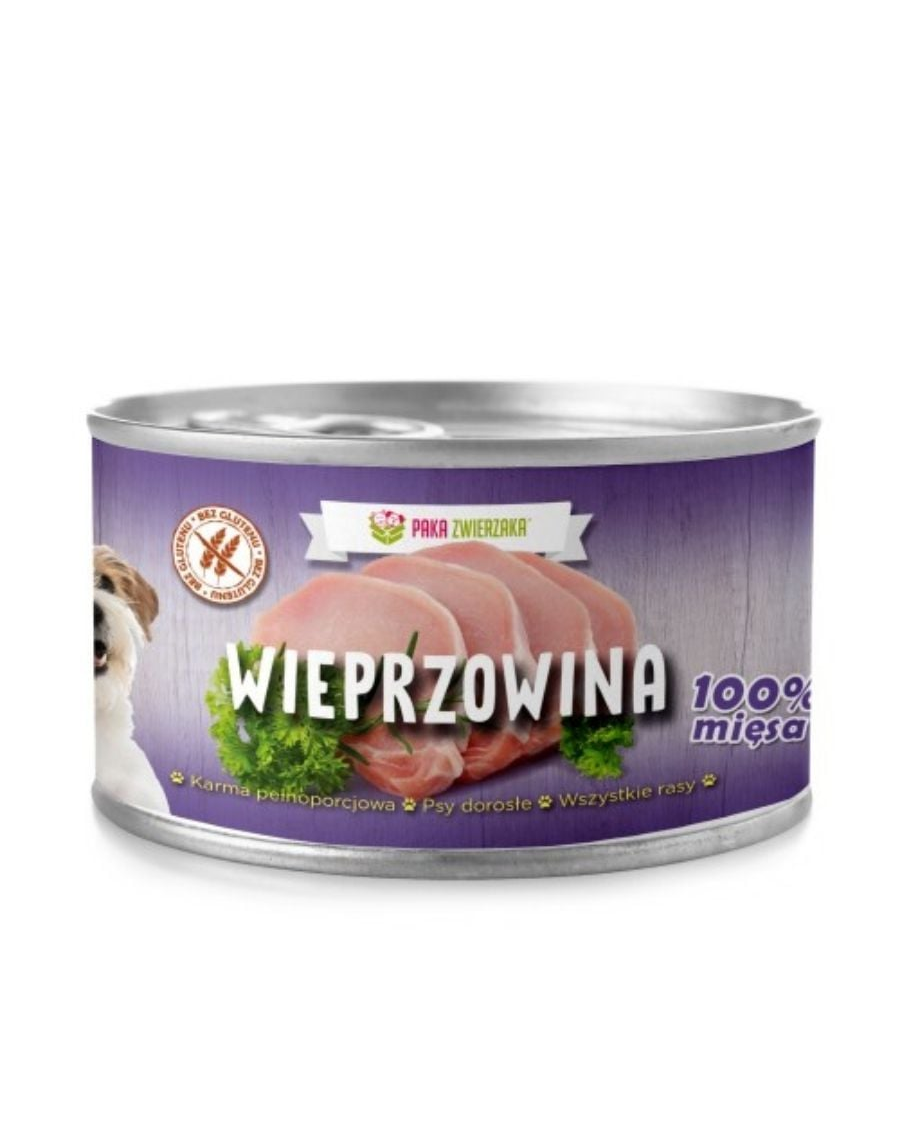 Face o masă gustoasă pentru fiecare câine. Nu conține bulion sau materiale de umplutură adăugate. Carnea de porc, sub formă de carne proaspătă și suculentă de înaltă calitate și organe comestibile, reprezintă 100% din compoziție. Alimentele sunt bogate în surse foarte digerabile de proteine animale și nutrienți care sunt esențiale pentru buna funcționare a organismului.