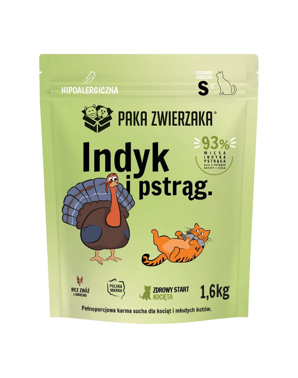 Paka Zwierzaka Curcan cu Păstrăv este o soluție nutrițională completă, adaptată nevoilor specifice ale pisicilor tinere, oferindu-le un start sănătos în viață – fără adaosuri inutile.
