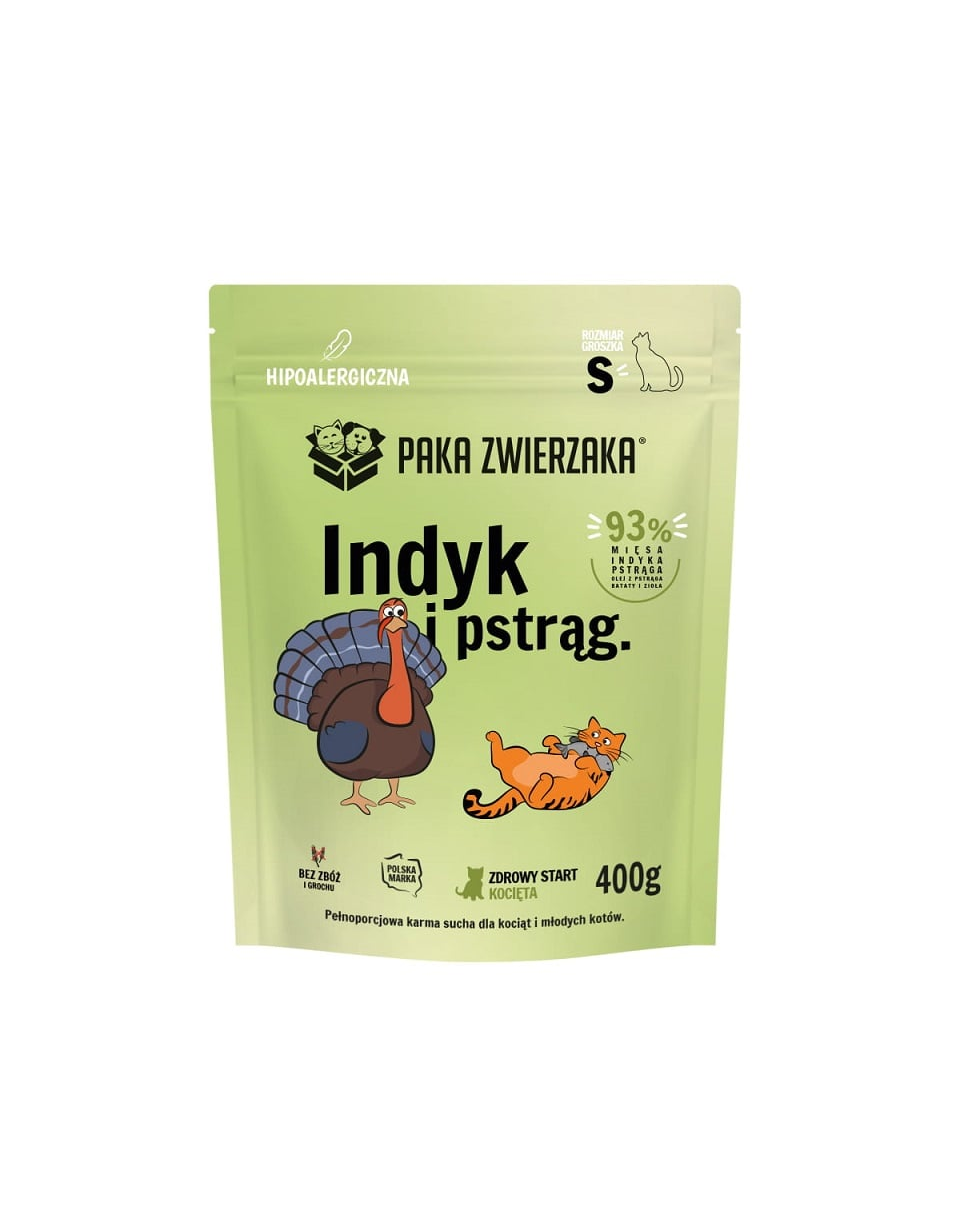 Paka Zwierzaka Curcan cu Păstrăv este o soluție nutrițională completă, adaptată nevoilor specifice ale pisicilor tinere, oferindu-le un start sănătos în viață – fără adaosuri inutile.