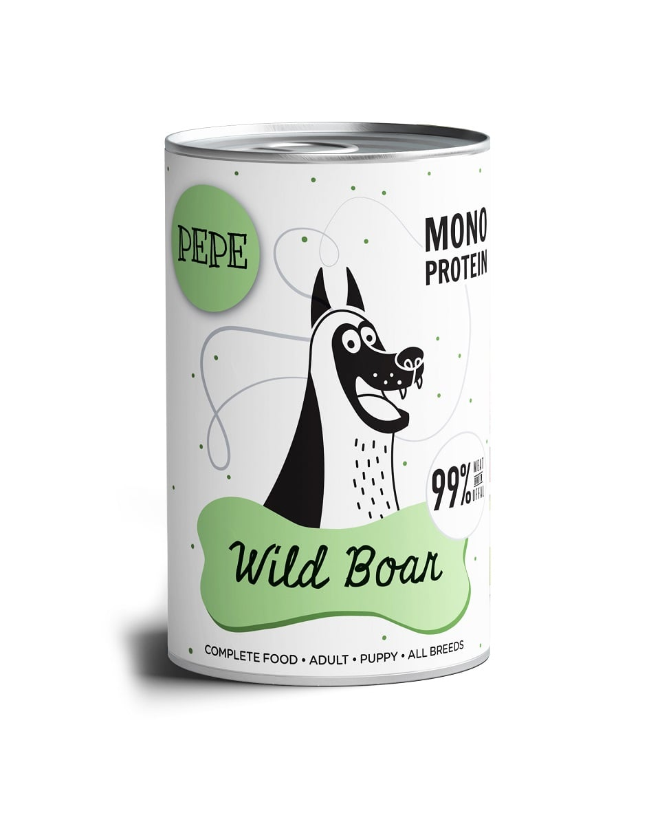 Compoziție: 99% mistreț (71% carne + organe, 28% supă), 1% minerale