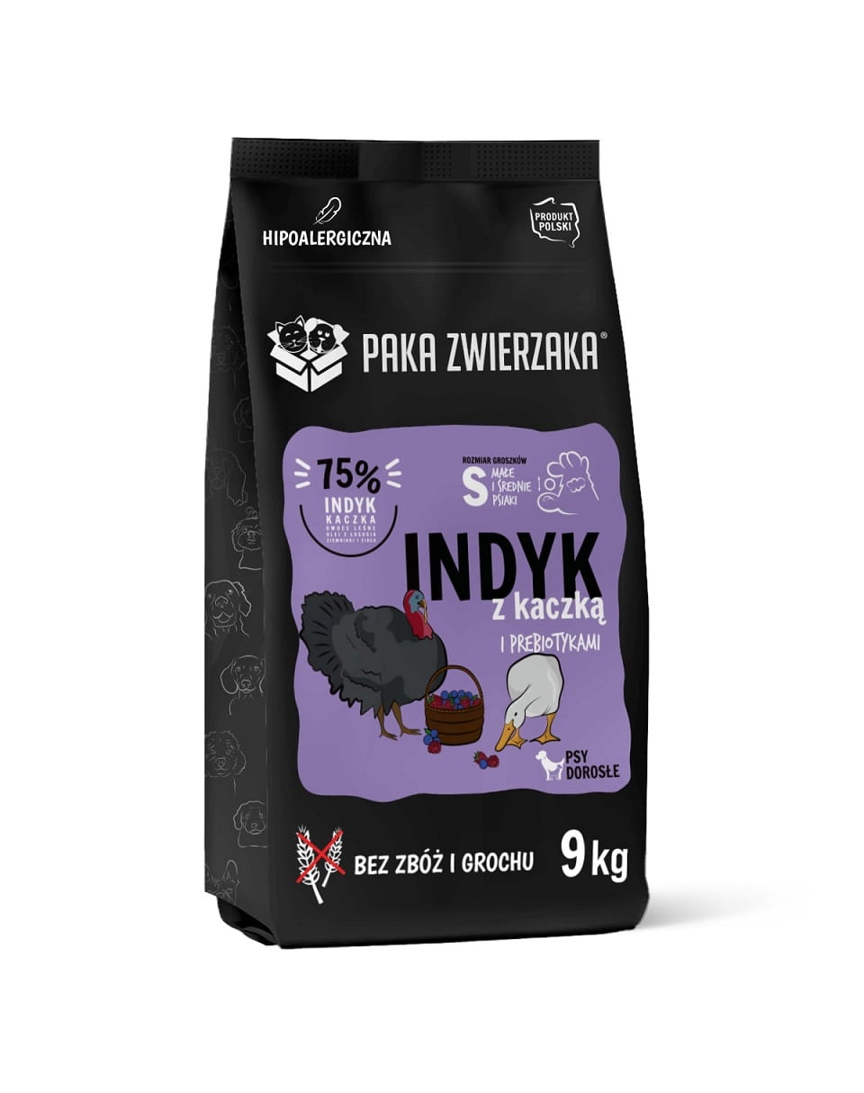 Hrană uscată de calitate SUPERPREMIUM perfect echilibrată, fără cereale, mazăre, porumb, soia, conservanți și coloranți artificiali. Carnea de curcan, de rață, legumele și ierburile de calitate superioară, obținute de la furnizori locali, vor asigura o palatabilitate ridicată și o digestibilitate ușoară. O formulă ideală pentru câinii cu stomacul delicat și intoleranță la cereale. Chipsurile mici vor funcționa bine pentru câinii de rasă mică.