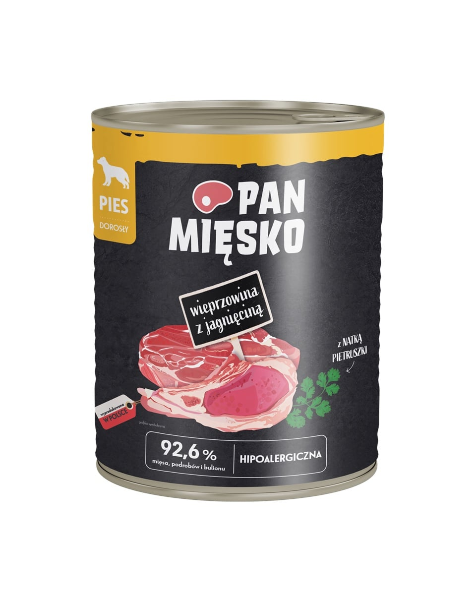 Descoperă hrana umedă bogată în carne pentru câini Pan Mięsko. Se remarcă prin carne atent selecționată, îmbogățită cu mere suculente din Polonia și adaosuri valoroase, precum ierburi și semințe, care contribuie la sănătatea și buna condiție a câinelui tău. Rețetele noastre au fost create de specialiști pentru a oferi companionului tău patruped exact ceea ce are nevoie. Câinele tău merită tot ce este mai bun.