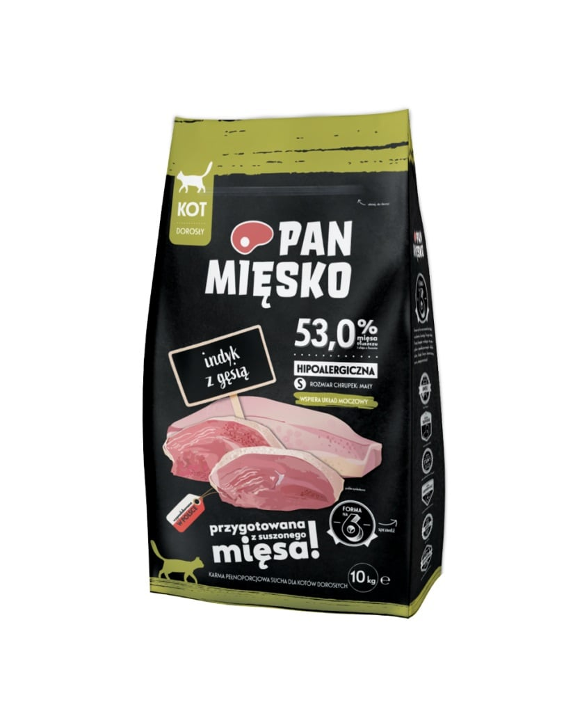 Faceți cunoștință cu hrana uscată hipoalergenică pentru pisici Pan Mięsko. Acestea se disting prin cărnurile atent selecționate cu mere poloneze suculente, legume sănătoase și nutrienți valoroși care vor influența pozitiv sănătatea și starea de sănătate a pisicii dumneavoastră. Rețetele noastre au fost pregătite de specialiști pentru a-i oferi companionului dumneavoastră cu patru picioare exact ceea ce are nevoie. Pisica dvs. merită ce e mai bun.
