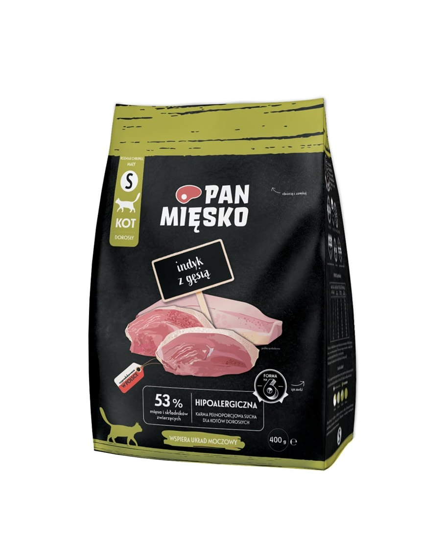Faceți cunoștință cu hrana uscată hipoalergenică pentru pisici Pan Mięsko. Acestea se disting prin cărnurile atent selecționate cu mere poloneze suculente, legume sănătoase și nutrienți valoroși care vor influența pozitiv sănătatea și starea de sănătate a pisicii dumneavoastră. Rețetele noastre au fost pregătite de specialiști pentru a-i oferi companionului dumneavoastră cu patru picioare exact ceea ce are nevoie. Pisica dvs. merită ce e mai bun.