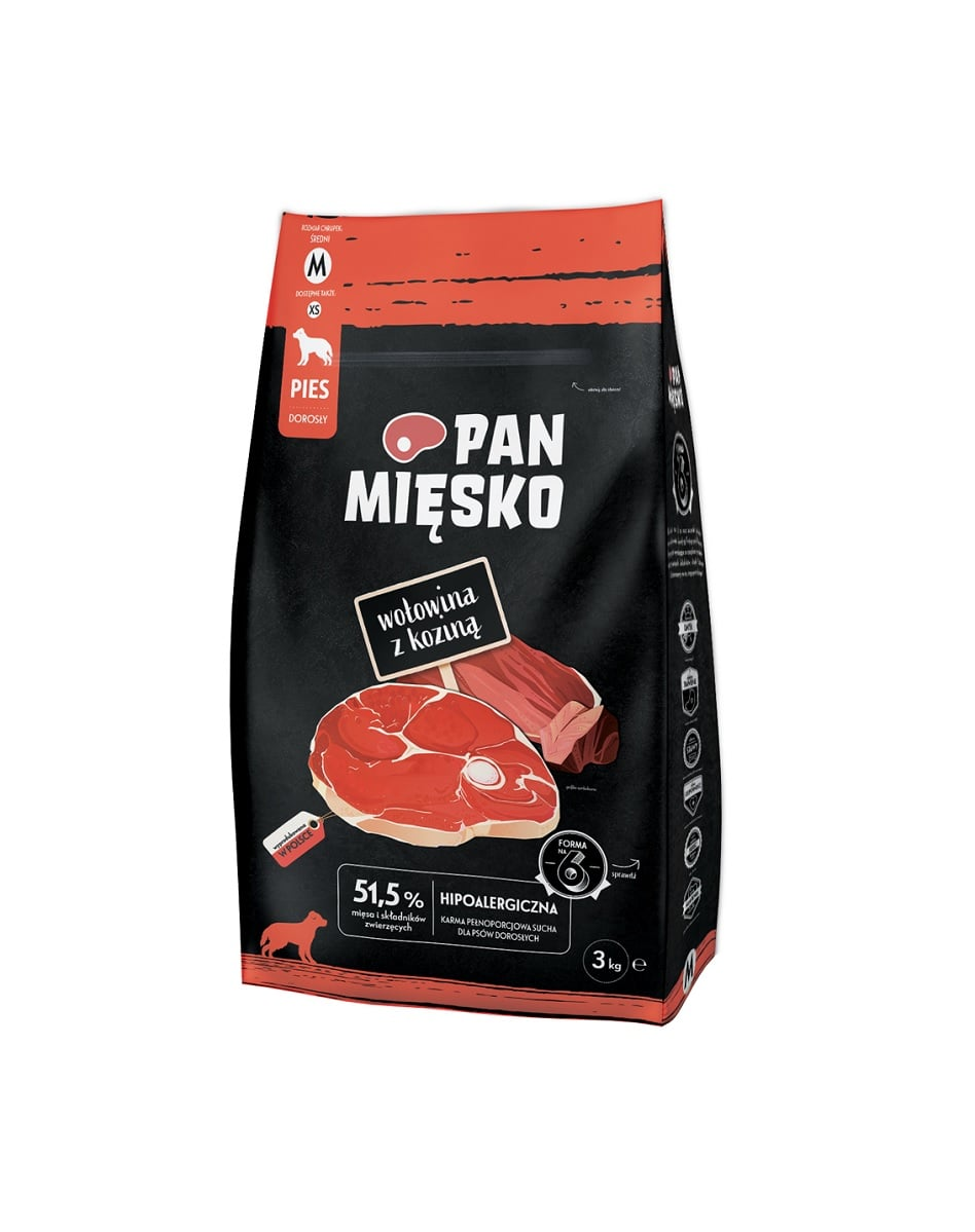 Faceți cunoștință cu hrana uscată hipoalergenică pentru câini Pana Mięsko. Conține carne atent selecționată cu mere poloneze suculente, legume sănătoase și nutrienți valoroși care vor influența în mod pozitiv sănătatea și starea câinelui dumneavoastră. Rețetele noastre sunt pregătite de experți pentru a vă asigura că partenerul dumneavoastră patruped primește ceea ce are nevoie. Câinele dvs. merită ce e mai bun.