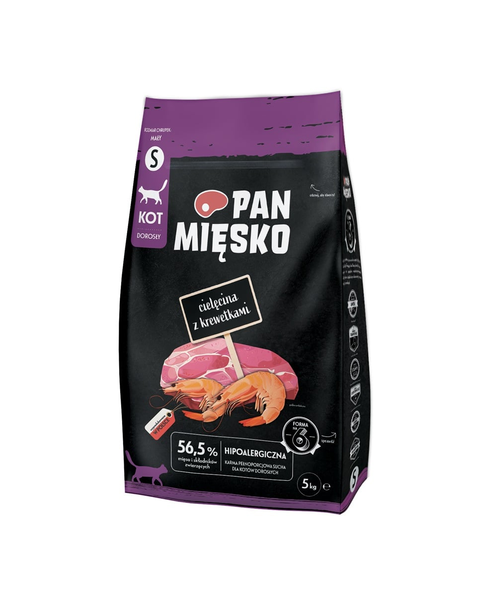 PAN MIĘSKO Cielęcina z krewetkami dla kotów chrupki S