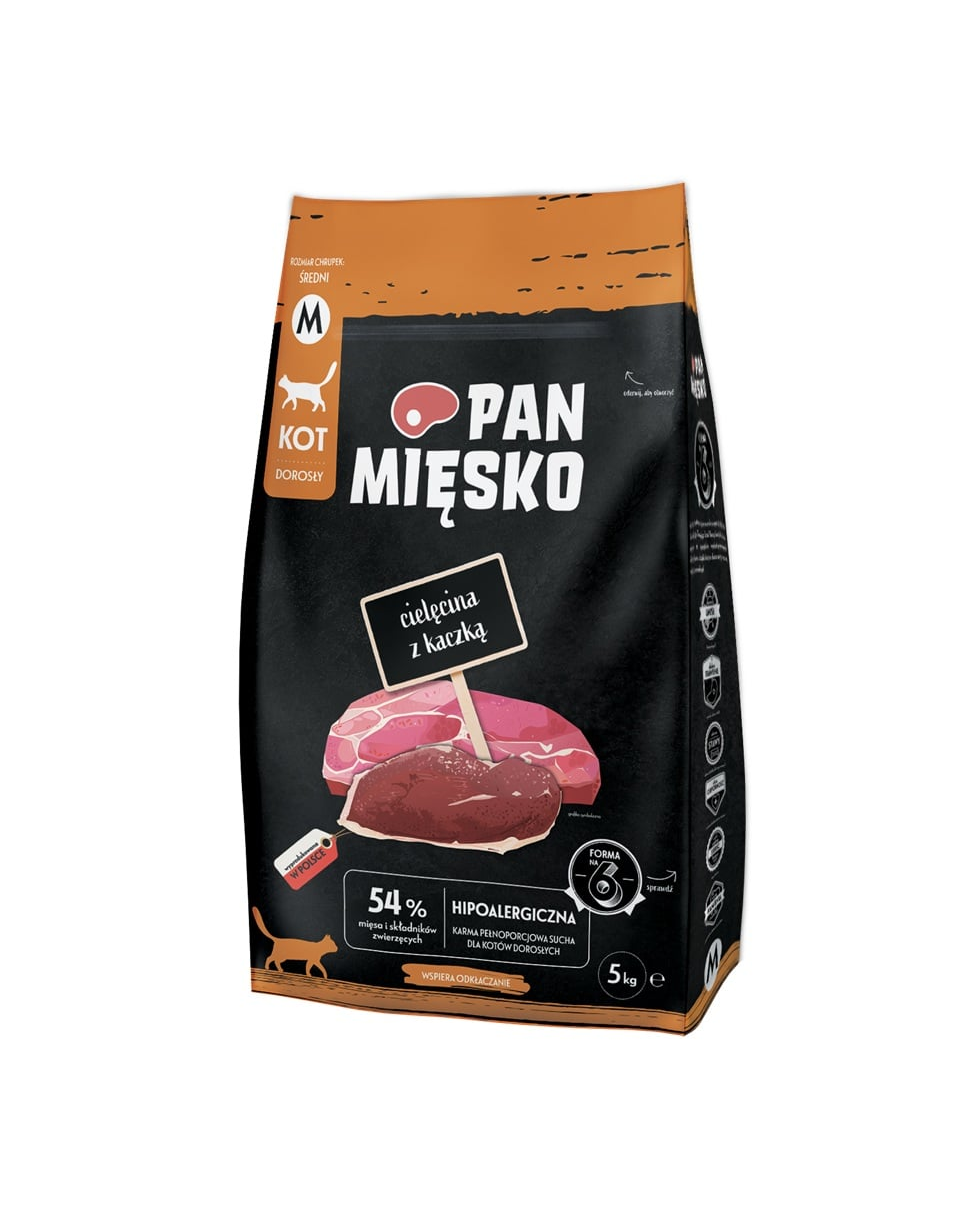 PAN MIĘSKO Vițel cu rață hrană uscată pentru pisici M 5 kg