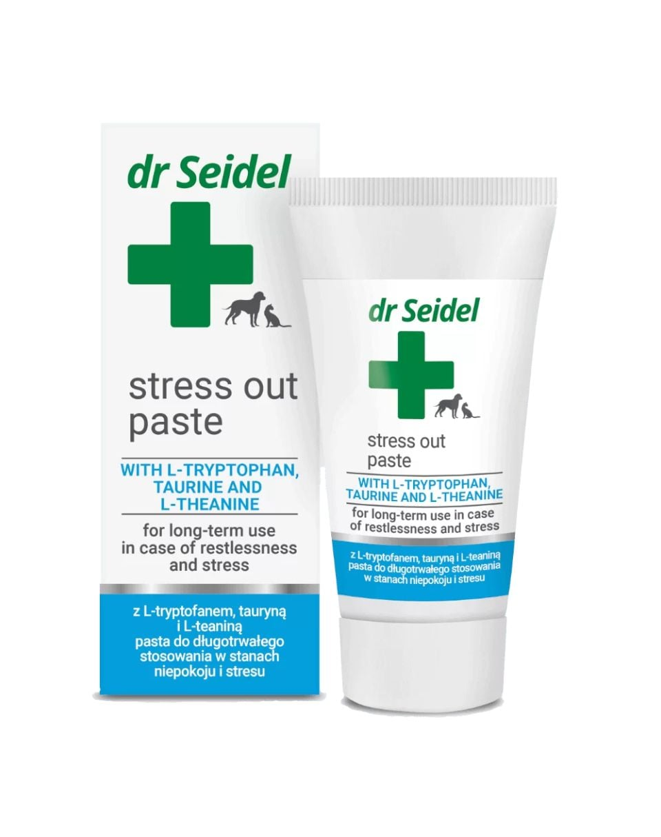 Pasta calmantă pentru câini și pisici DR SEIDEL Stress Out este o soluție practică pentru animalele care se confruntă cu stres sau anxietate și nu acceptă ușor tabletele. Este potrivită pentru câini și pisici care manifestă agitație, anxietate de separare sau dificultăți de adaptare la schimbări.