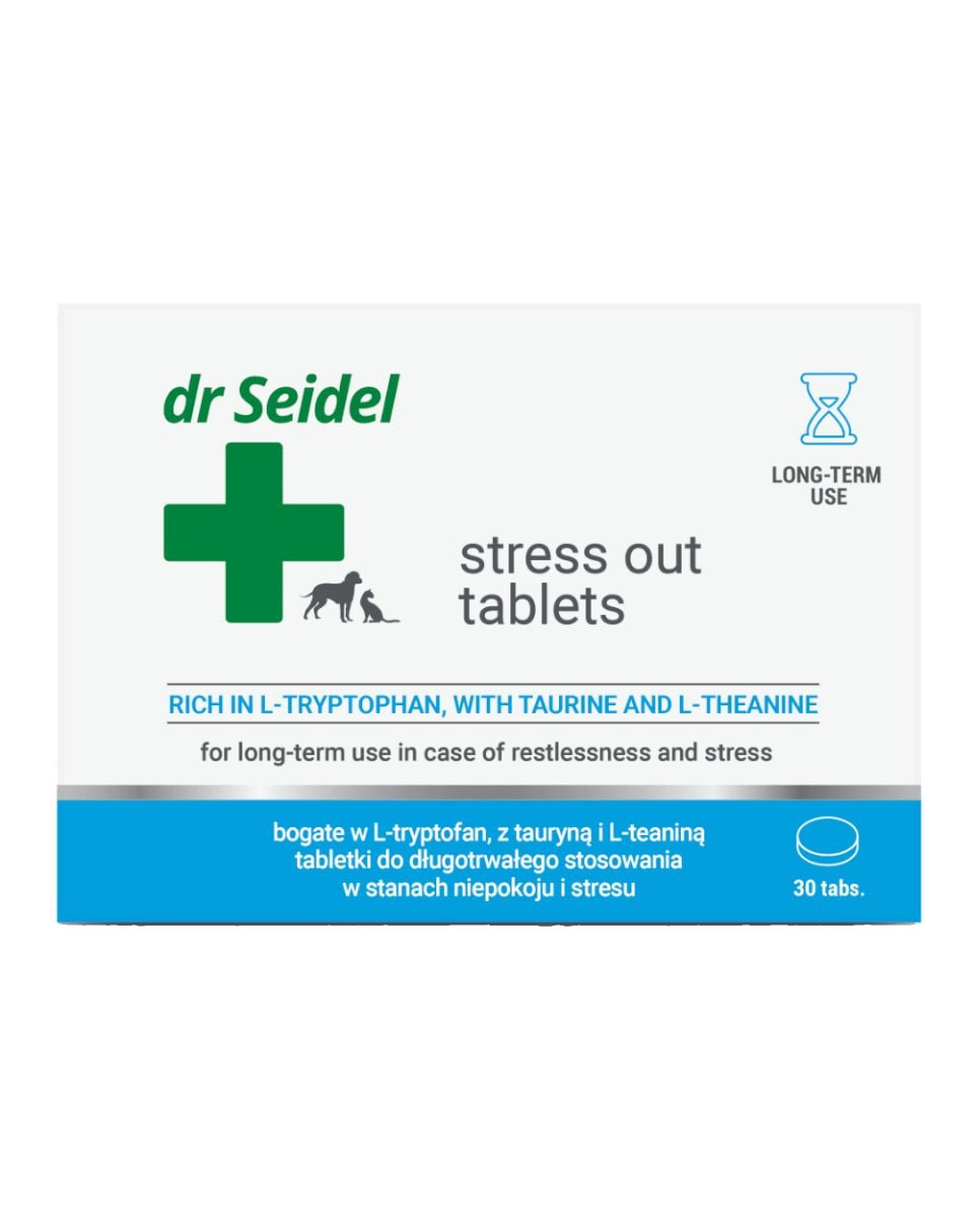 Pastilele calmante pentru câini și pisici DR SEIDEL Stress Out sunt concepute pentru animalele care se confruntă cu stres cronic, anxietate de separare sau dificultăți de adaptare. Sunt potrivite pentru câini și pisici care manifestă comportamente precum agitație, vocalizare excesivă sau reacții exagerate la stimuli.