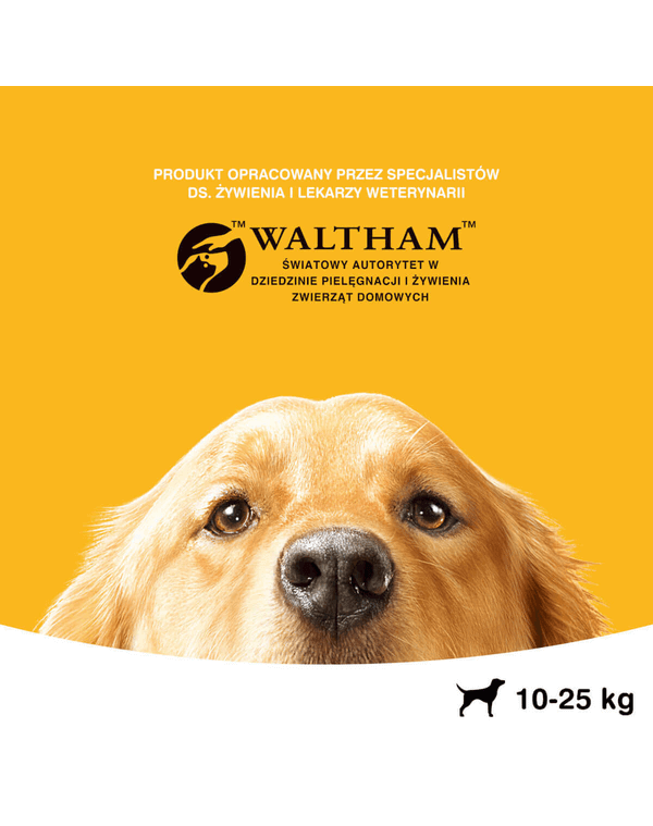 Compoziție: cereale, produse vegetale, carne și produse de origine animală (inclusiv 4% pui), substanțe minerale (inclusiv 2,2% tripolifosfat de sodiu), uleiuri și grăsimi.