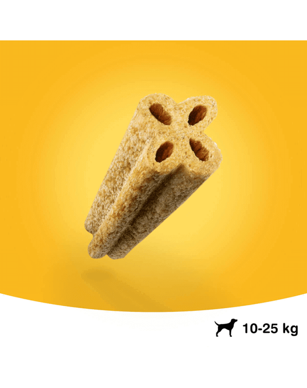 Această gustare pentru câinii de talie medie are o structură și o formă adecvată adaptată la fălcile câinilor mici.