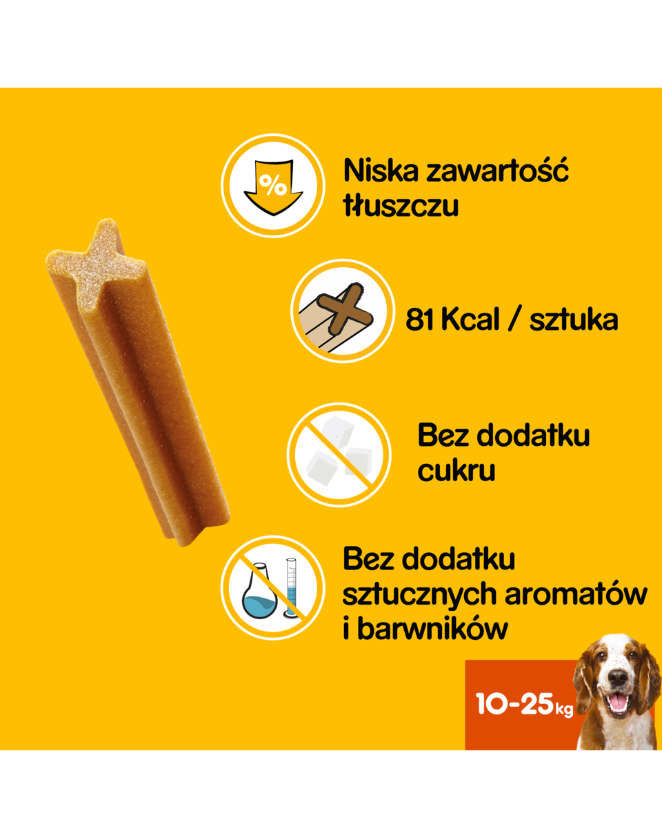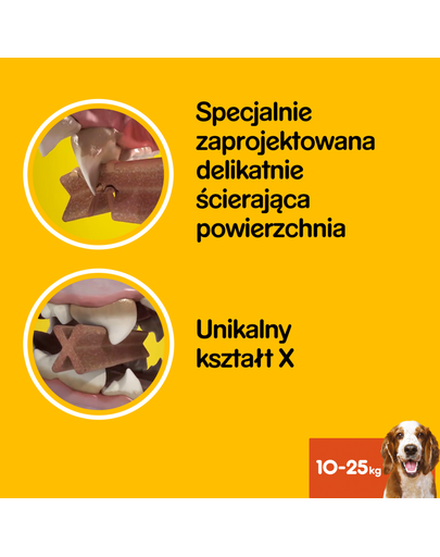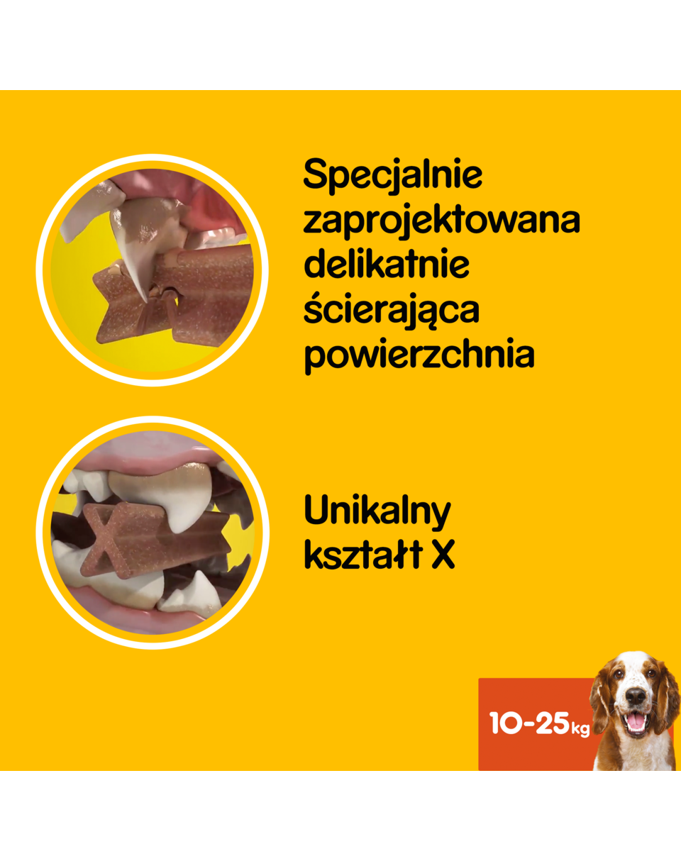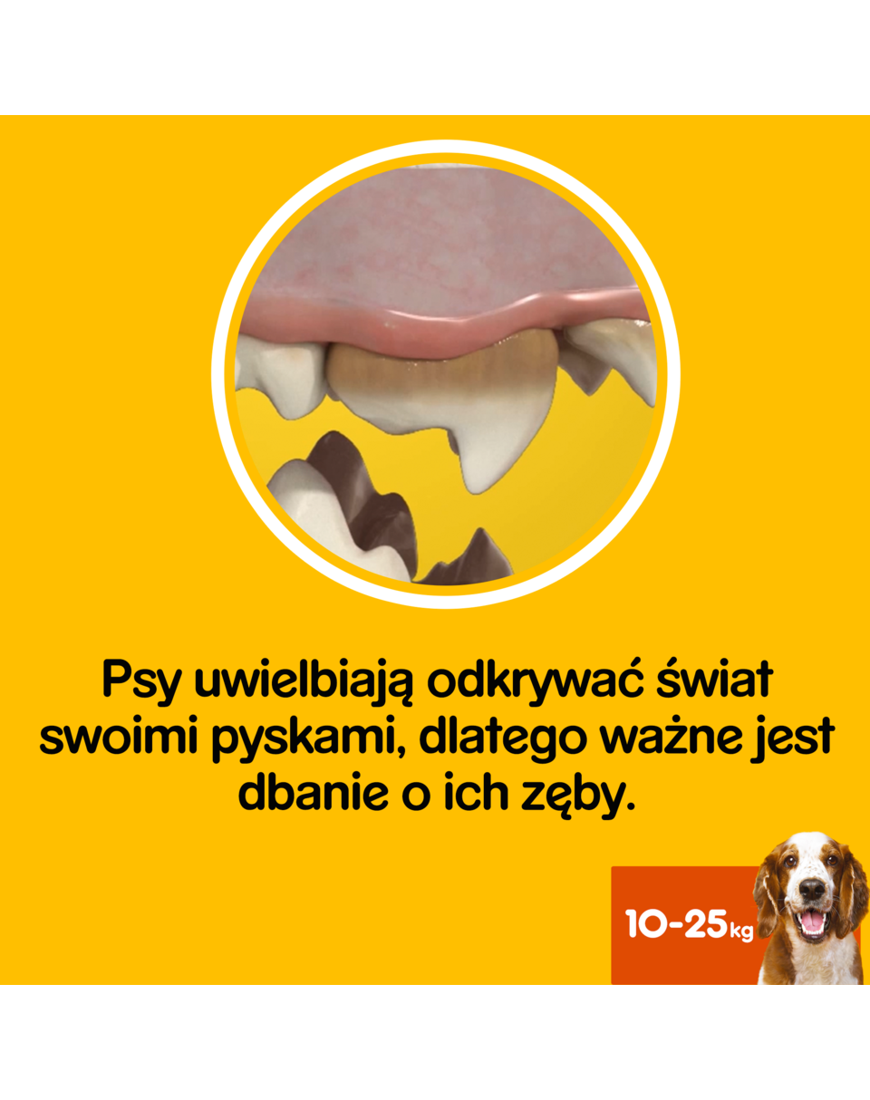 PEDIGREE DentaStix Daily Oral Care este o hrană complementară pentru câini cu vârsta de peste 4 luni. Această recompensă este destinată exclusiv câinilor cu greutatea cuprinsă între 10 și 25 kg.