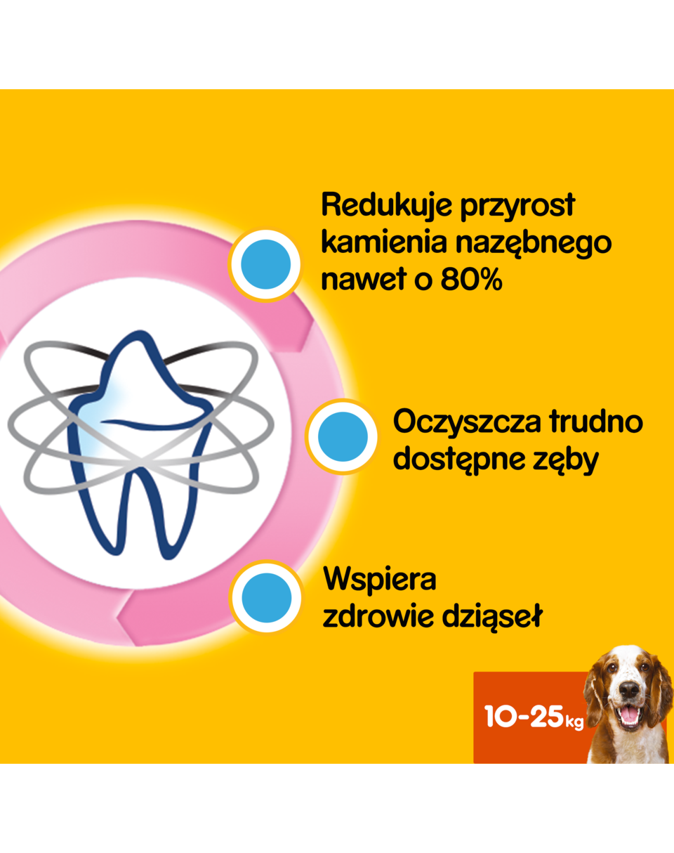Pedigree Dentastix are un efect pozitiv asupra dinților și gingiilor câinelui dumneavoastră - curățând și reducând acumularea de tartru. Cu PEDIGREE DentaStix aveți grijă în mod eficient de sănătatea și vitalitatea câinelui dumneavoastră.