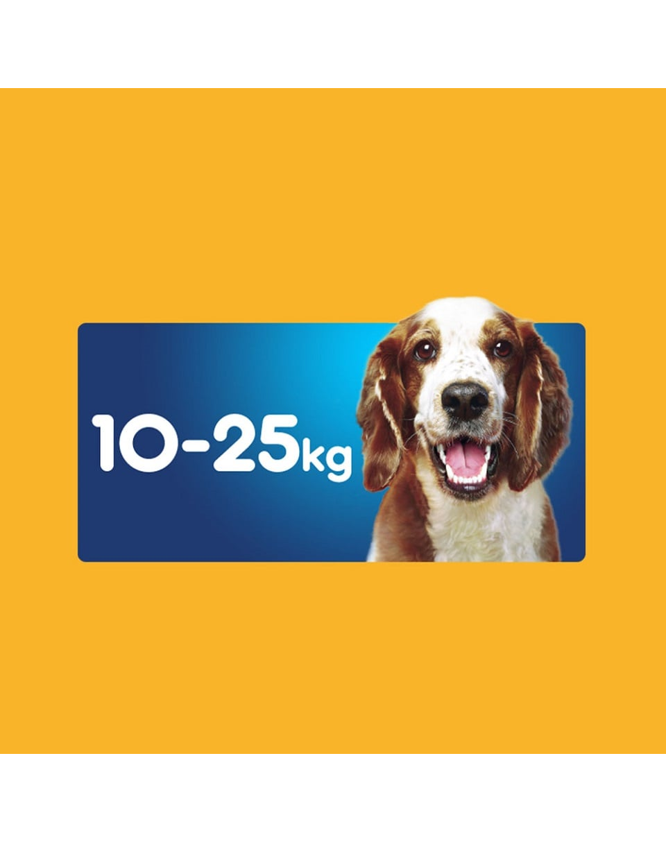 Câini de talie medie, de ex. cocker spaniel: se administrează 1 dată pe zi. Această recompensă de mestecat este potrivită pentru câini cu greutatea de 10 - 25 kg. Nu este potrivit pentru cățelușii cu vârsta sub 4 luni.