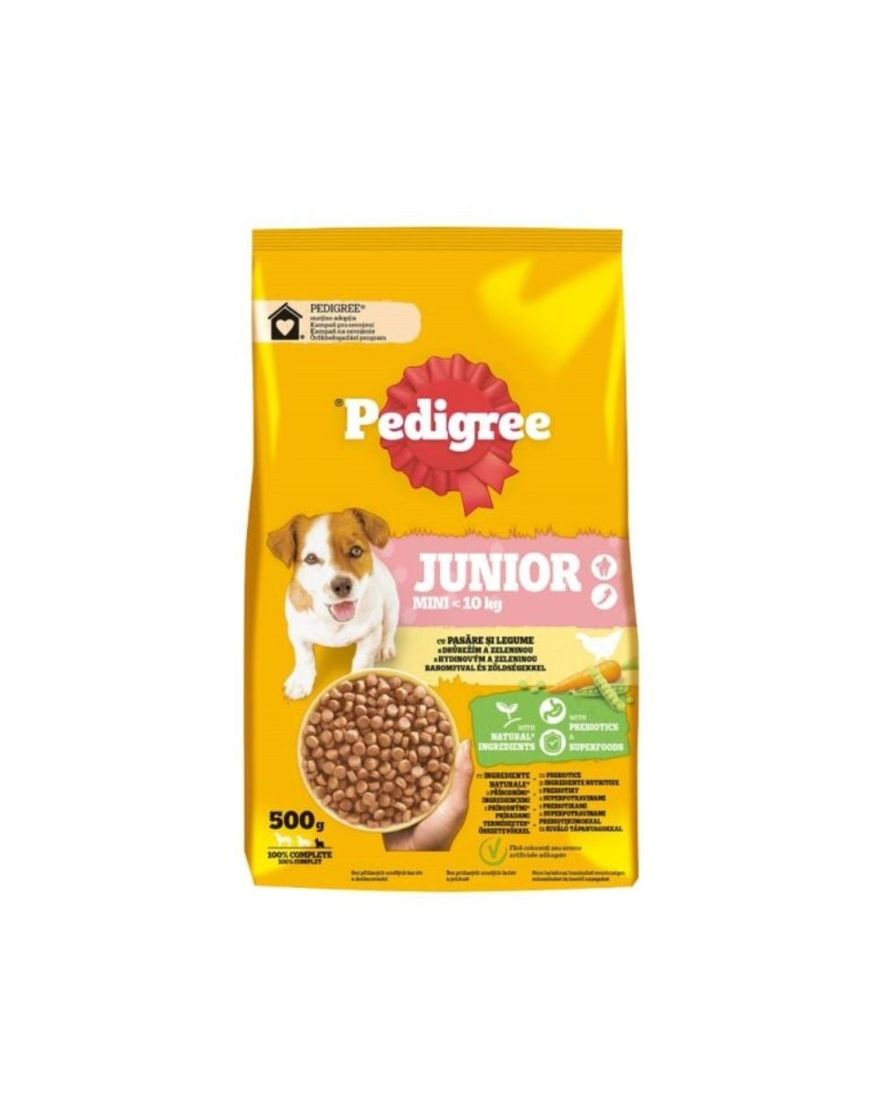 PEDIGREE Junior Mini cu pui și legume este o hrană uscată completă, special formulată pentru puii de talie mică, susținând creșterea și dezvoltarea armonioasă în primele luni de viață. Raportul echilibrat de proteine, grăsimi și minerale contribuie la formarea masei musculare, la dezvoltarea unor oase puternice și la buna funcționare a sistemului imunitar.