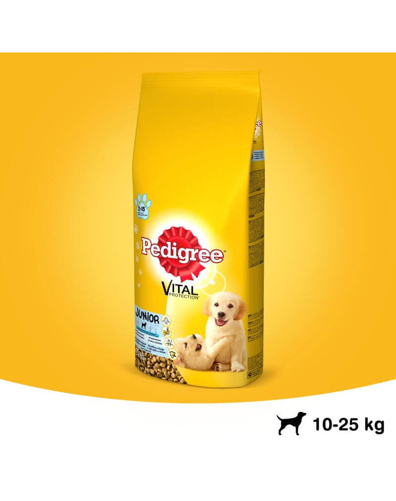 Hrană uscată completă pentru puii de câine de talie medie.În primul an de viață, câinii au nevoie de o nutriție specială care să le asigure o dezvoltare optimă. PEDIGREE® Junior asigură o hrană completă și echilibrată ce ajută cățelușii să crească sănătoși și puternici.