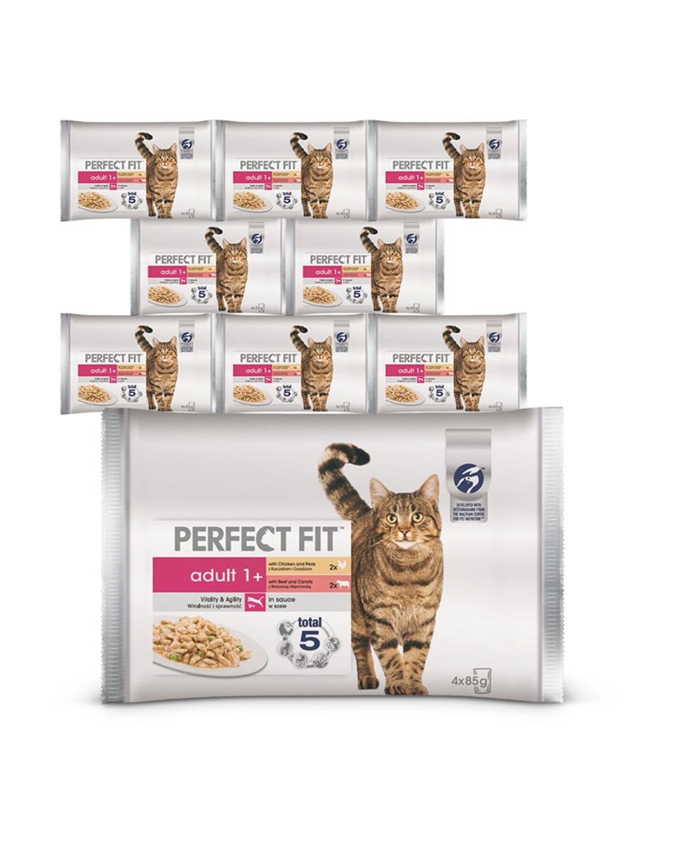 Am creat hrana umedă Perfect Fit Adult 1+ cu pui și mazăre și vită și morcovi pentru pisici adulte (peste 1 an). Este o hrană sănătoasă, echilibrată și gustoasă pentru animalul dumneavoastră de companie. Rețeta unică Perfect Fit a fost dezvoltată de nutriționiști și veterinari de la Centrul de Nutriție Animală WALTHAM. Ca urmare, satisface eficient cele 5 nevoi de sănătate de bază ale pisicii dumneavoastră. Am adaptat hrana Perfect Fit special la cerințele individuale ale animalului dvs. de companie, astfel încât să puteți fi siguri că vă îngrijiți pisica în cel mai bun mod posibil. Rețeta perfect compusă și combinația specială de vitamine și minerale vă vor ajuta pisica adultă să își mențină forma fizică și vitalitatea deplină, iar conținutul echilibrat de proteine îi va întări și mai mult mușchii. Oferiți pisicii dvs. cea mai bună și completă nutriție în fiecare zi.