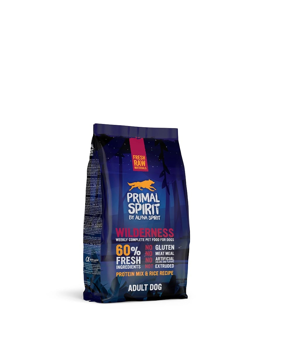 Primal Spirit Wilderness este o hrană naturală, creată din experiența Alpha Spirit, gândită pentru câinii care merită o nutriție completă, gustoasă și sănătoasă. Conține ingrediente atent selecționate și un procent ridicat de carne proaspătă, potrivită pentru câinii adulți din toate rasele și de toate dimensiunile.