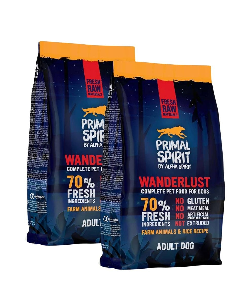 Primal Spirit Wanderlust este o hrană completă, moale și naturală, concepută pentru a oferi câinelui tău o dietă echilibrată, gustoasă și ușor de digerat. Formula sa conține carne proaspătă de pui, orez, pește și legume, asigurând un aport optim de proteine, fibre și vitamine esențiale.