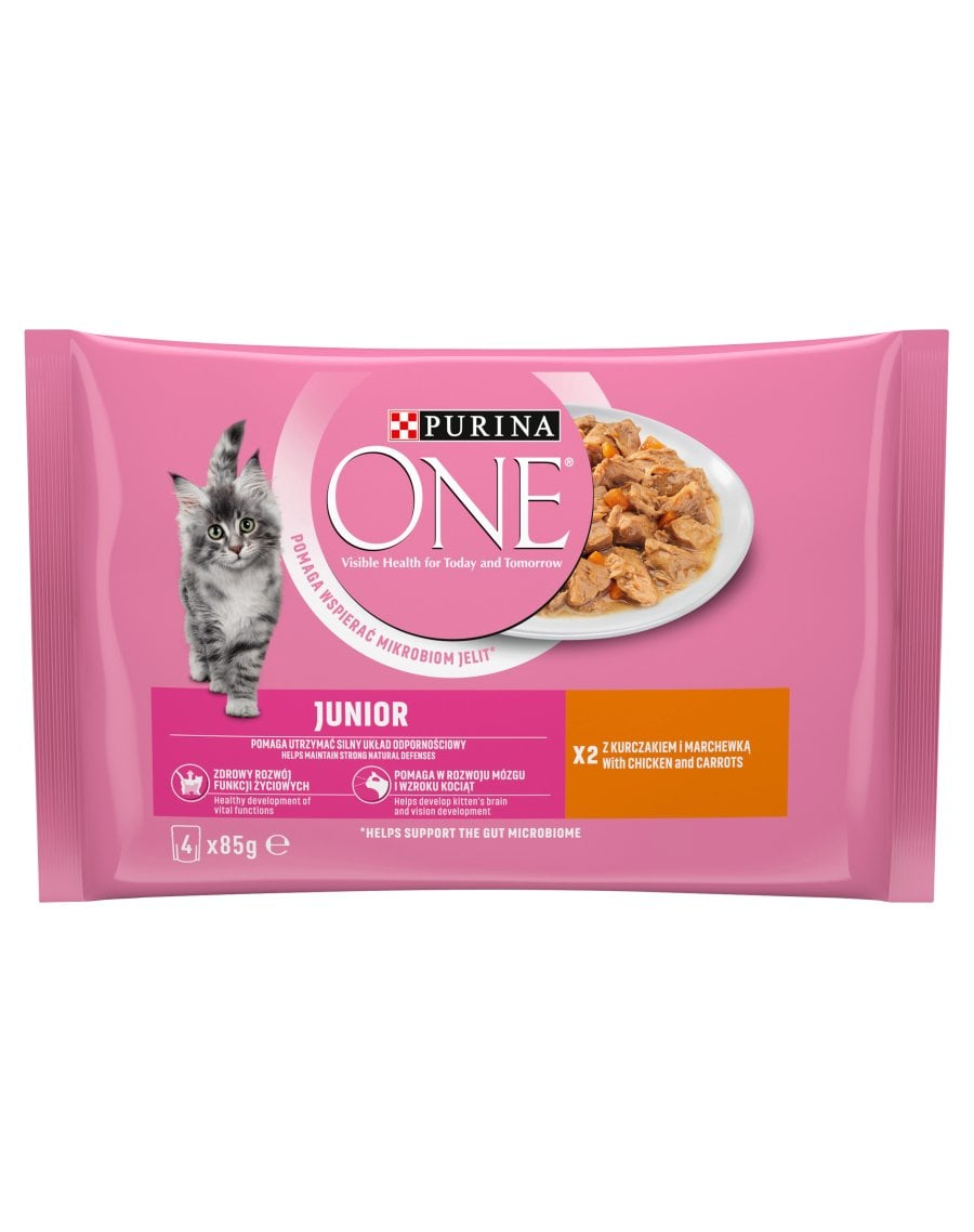 Purina ONE Junior este o hrană umedă completă destinată pisicilor cu vârsta între 1 și 12 luni, formulată pentru a susține dezvoltarea armonioasă în perioada de creștere. Este potrivită și pentru pisicile gestante sau lactante, care au nevoi nutriționale crescute.